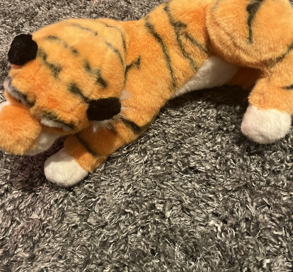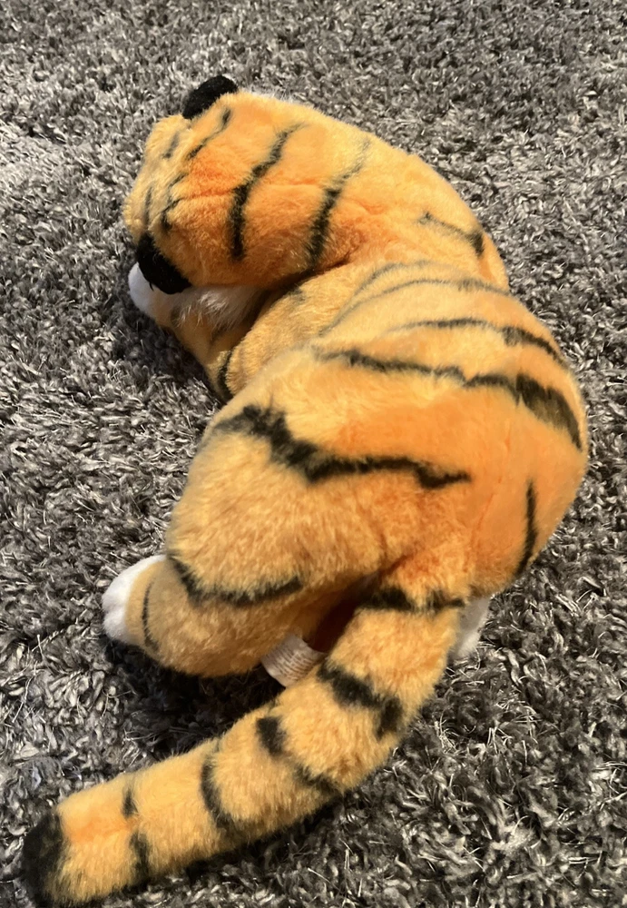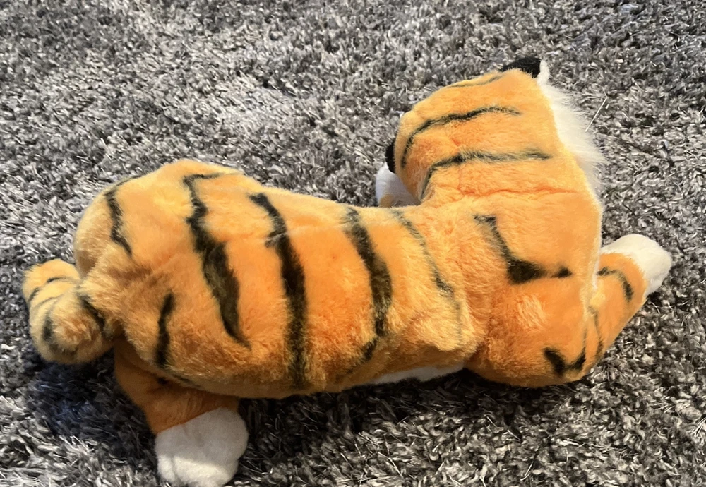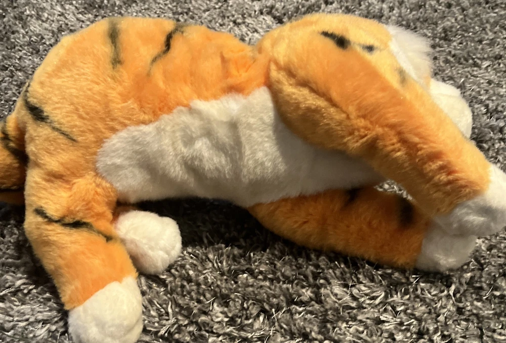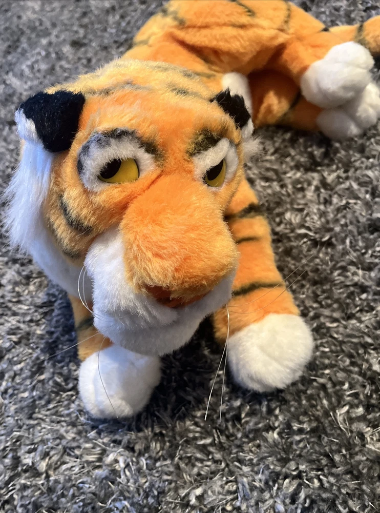 This 1992 Mattel Disney Shere Khan plush tiger stuffed animal is a must-have for any Jungle Book fan. Made in China, this 13-inch plush toy features the fearsome character of Shere Khan, complete with accurate details and a menacing appearance. The plush toy is in excellent condition and is a perfect addition to any Disneyana collection. The toy comes from a smoke-free and pet-free home and is ready to be shipped to its new owner. Get this rare and collectible item today!