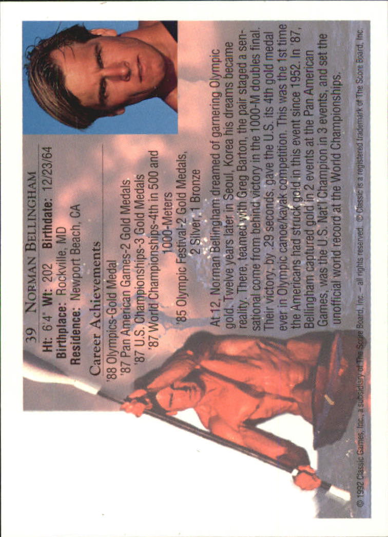 Norman Bellingham 1992 Classic World Class Athletes #39 Kayaking Canoe USA POOR. Condition is Ungraded. Shipped with eBay Standard Envelope for Eligible Items up to $20.