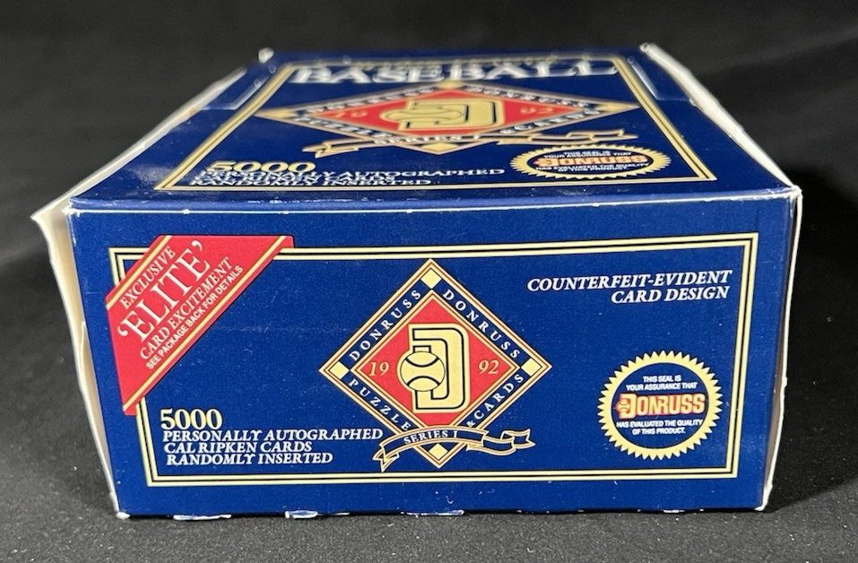 1992 Donruss Baseball Series 1 Box Look for Elites and Cal Ripken Autos 36 Packs Per Box x 15 Cards Per Pack = 540 Cards + Puzzle Pieces Look For: Donruss Elite Series Inserts Cal Ripken Jr. Signature Series Auto Inserts /5000 High Grade Rookies & Hall of Famers The 1992 Donruss set contains 784 standard-size cards issued in two separate series of 396. One of 21 different puzzle panels featuring Hall of Famer Rod Carew was inserted into each pack. The basic card design features glossy color player photos with white borders. Two-toned blue stripes overlay the top and bottom of the picture. Subsets include Rated Rookies (1-20, 397-421), All-Stars (21-30/422-431) and Highlights (33, 94, 154, 215, 276, 434, 495, 555, 616, 677). Will Consider Reasonable Offers. Please see the high-res images for details. Feel free to reach out with any questions or if you're looking for something specific. Please follow the Big Joe Knows Cards Store for new items coming soon! We’ll be listing from a large and carefully curated collection of Vintage & Modern Baseball, Basketball, Football, Hockey, Garbage Pail Kids, Magic: The Gathering, Marvel, Pokémon, and Disney cards, etc. CONTENTS OF UNOPENED PACKS: - With the exception of the players visible on the front and/or back of a pack, there are no guarantees about the contents of any unopened material. Higher value packs have been authenticated and/or graded by the foremost industry experts from PSA & BBCE. Packs that have not been wrapped or graded by BBCE or PSA are being SOLD AS FACTORY SEALED . If you have any questions about the authenticity of any product being sold, please feel free to ask for additional photographs and/or information. ITEM(S) IN IMAGES: - Unless otherwise noted, the item(s) in the images are of the exact product that you will receive. Please be sure to review the high-resolution images. CARD CONDITION OF RAW/UNGRADED CARDS: - When assigning the condition of a card, we use the eBay card condition guidelines , which include i) Poor, ii) Very Good, iii) Excellent, and iv) Near Mint or Better. Please note, these four conditions (and standards) do not necessarily correspond directly with professional grading services. - When e stimated grades are provided, they are being provided for evaluation purposes only. While the best efforts have been made to provide an accurate assessment of the condition of the cards, these estimates are not a guarantee of grades. Actual grades assigned by a professional grading service (PSA, SGC, etc.) may be lower or higher than the estimates that have been provided. - If there is an issue with the card that does not seem to show up in the scan, best efforts will be made to call them out in the ' Condition description ' section of the listing. When the word ' Mint ' is used in the listing title and/or description, it means that, in my opinion, the card has a very good chance on receiving a grade of 8 NM-MT, 9 Mint, or 10 Gem Mint from a reputable professional grading service like PSA. Again, this description is no guarantee of the actual grade that a card may receive and should be used for evaluation purposes only. SHIPPING & COMBINED SHIPPING: - We take great care to ensure that our collectibles arrive in the same condition that you purchase them. All of our shipments are insured, and we photograph/record the packaging of our high-end products. - When requested, we will do our best to combine shipping when multiple items are purchased. There is a $1.99 handling fee built into the shipping cost you see listed on each item. When shipping is combined, the total shipping cost will be equal to a) the actual cost of shipping the combined items via your preferred method; plus, b) a handling fee ($1.99 on the first item and $0.99 for each additional item). Typically, you will have the option to select eBay's Standard Envelope Shipping or USPS Ground Advantage. - Please note, when we ship raw/ungraded cards via eBay's Standard Envelope Shipping Program, the cards will be placed in a new penny sleeve inside a new Card Saver I. The card(s) are then placed into a cardboard mail stiffener secured by painter's tape. Due to the weight and size requirements of the Standard Envelope program, we cannot combine more than three (3) cards into a Standard Envelope. We will not combine shipping using eBay's Standard Envelope Program when the combined value of the cards exceeds $25. You will have the option to have the cards shipped individually using the Standard Envelope or combine up to fifty (50) cards with a combined value of up to $500 via USPS Ground Advantage.