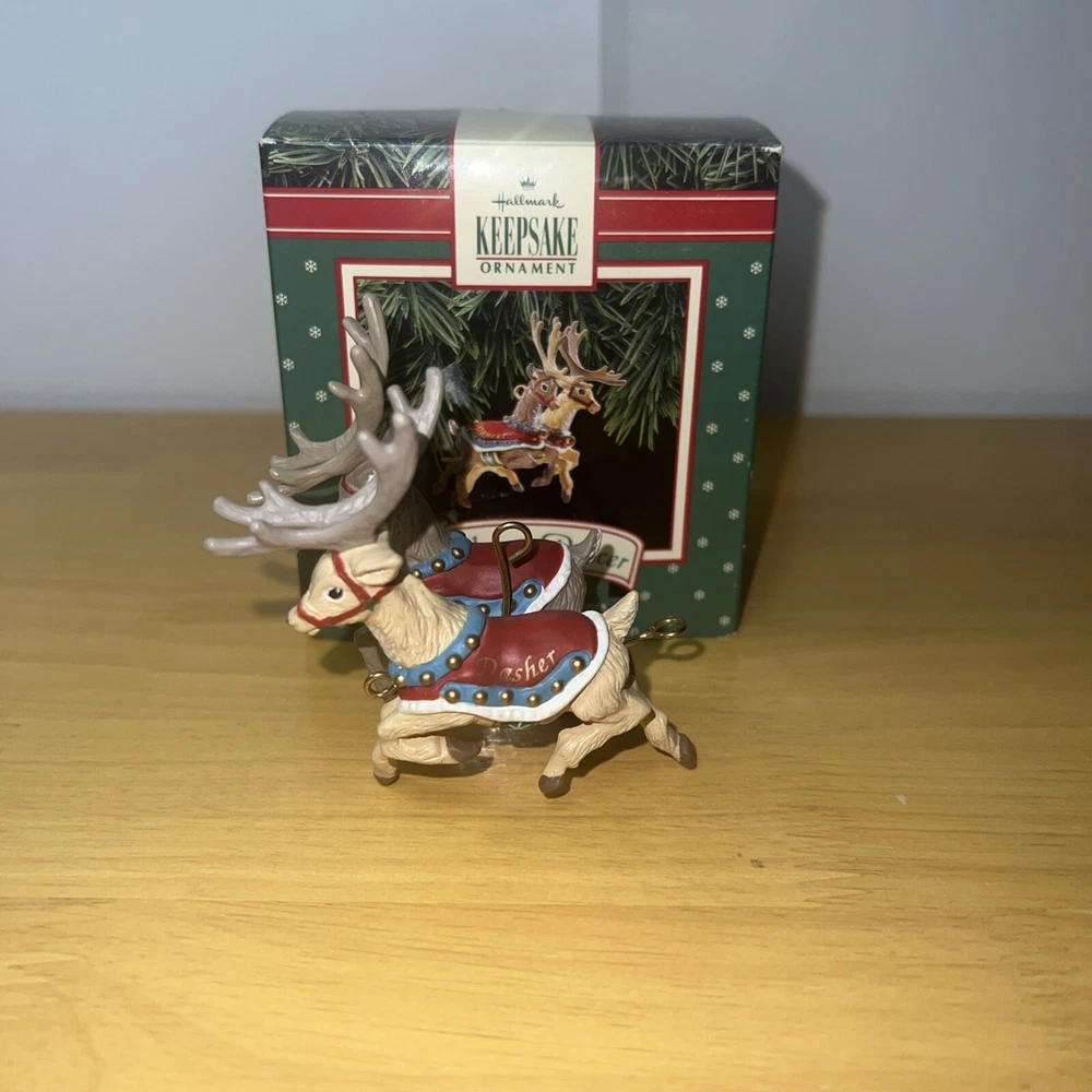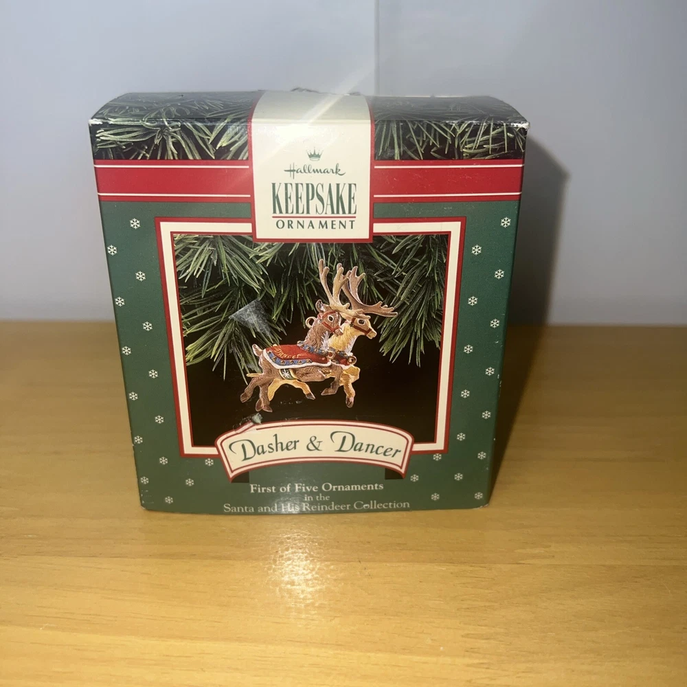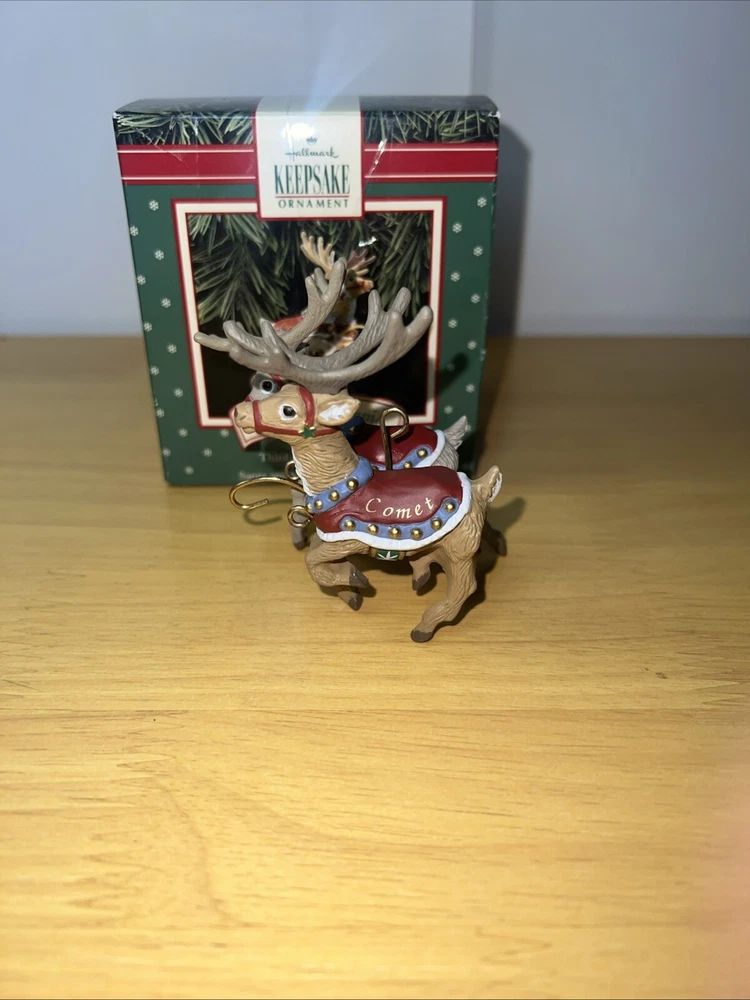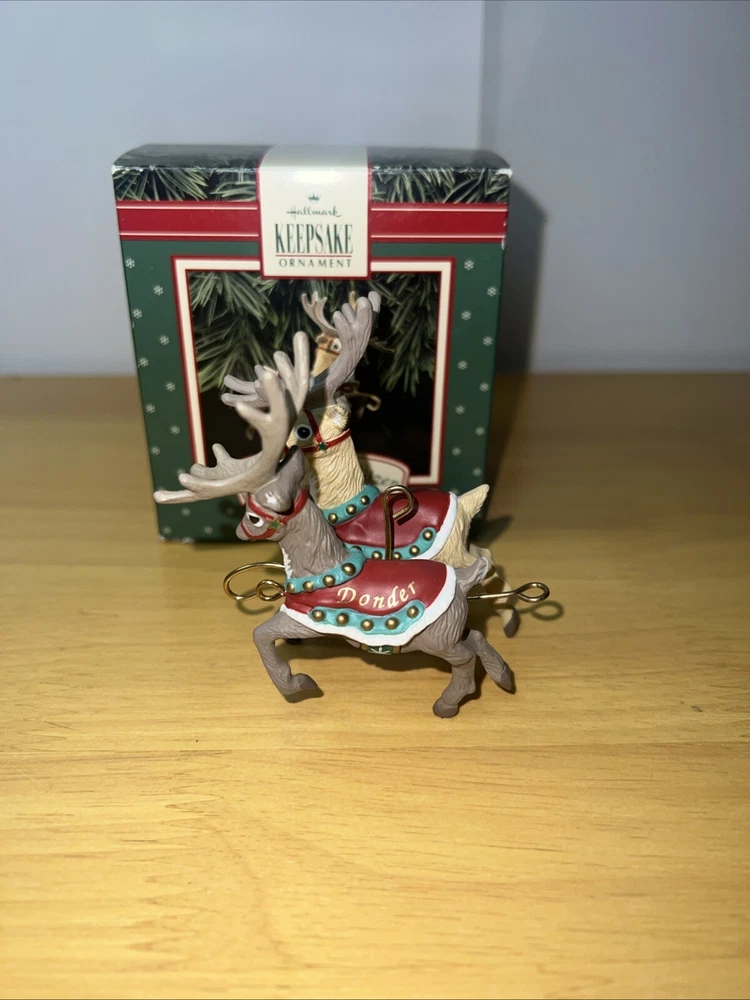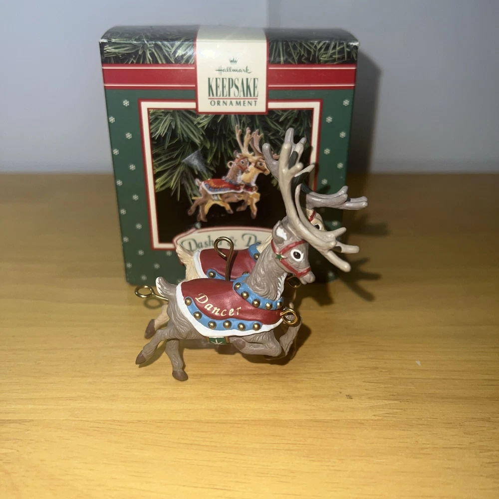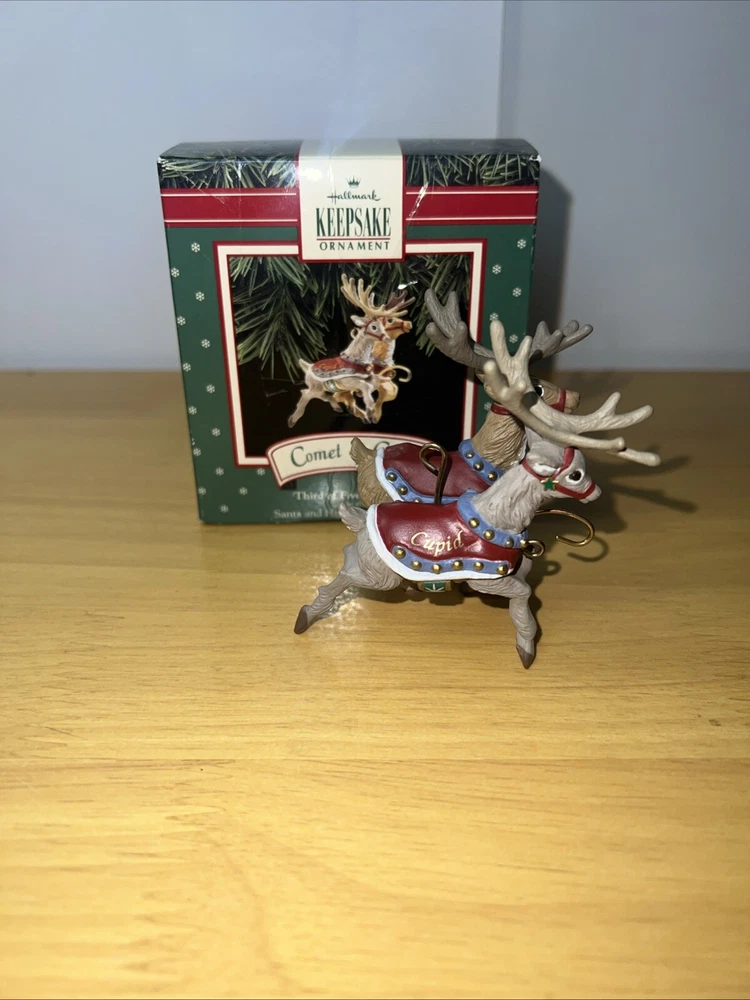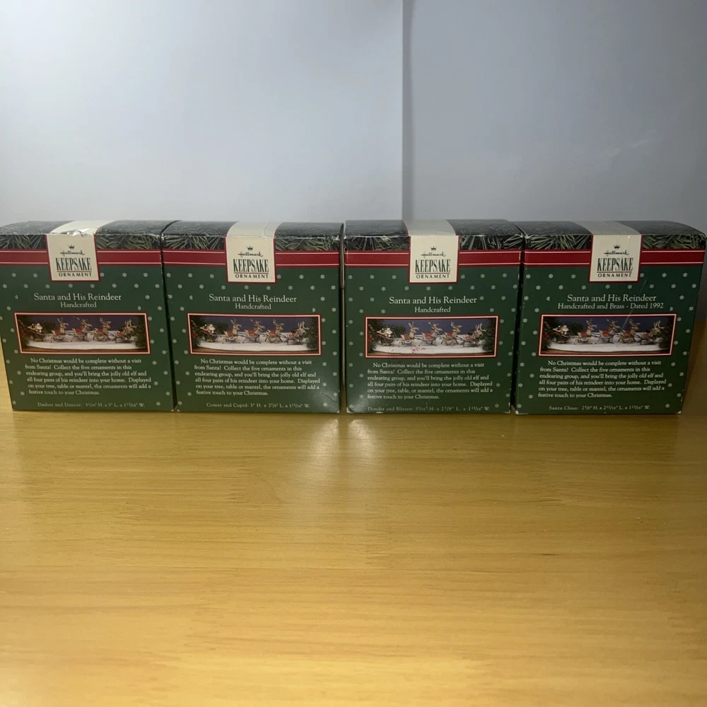 Add some festive charm to your holiday decorations with this 1992 Hallmark Santa Claus & His Reindeer ornament set. Crafted with care, this set includes six of eight reindeer ornaments, each shaped as Santa's trusty helper. The intricate details and vibrant colors make these ornaments a delightful addition to any collection. Whether you're a seasoned collector or just starting out, these ornaments are sure to bring joy to your home. Perfect for displaying on your tree, mantelpiece, or anywhere else you want to show off your holiday spirit. Don't miss out on this opportunity to add a touch of whimsy to your holiday decor.