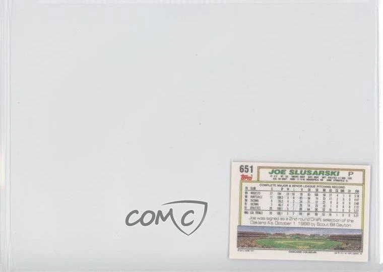 1992 Topps Micro - Box Set [Base] #651 Joe Slusarski - Baseball Card - Featuring the Oakland Athletics - Featuring Joe Slusarski Search for more: 1992 Topps Micro Search for more: 1992 Topps Micro - Box Set [Base] View all of our Listings Auctions Buy It Now About Us Located in the beautiful Pacific Northwest, COMC (Check Out My Cards) is the world's largest consignment service for trading card singles. More than 10,000 people have used our consignment service to list over 50 million trading cards. We currently house 20 million cards, each listed for sale with front and back images of the actual card. Find out how we can help you consign your items on eBay by contacting us through eBay messaging. COMC -- "The Safe & Easy Way to Buy & Sell" Representative Image - Select Specific Item above to see image of actual item Representative Image - Select Specific Item above to see image of actual item Raw Condition for Modern Cards Unless otherwise noted, raw modern cards are listed in Near Mint-Mint condition or better. A NM-MT card appears to be Mint at first glance, but upon closer inspection, may exhibit some of the following: minor print defects (e.g. roller marks, print line, dimple), minor scratches, slight edge wear, and slight corner wear. Centering is clearly visible in the images provided and does not factor into our condition assessment. Raw Condition for Vintage Cards Unless otherwise noted, raw vintage cards are listed in Excellent condition or better. An EX card may exhibit some of the following: minor rounding of corners, surface wear, print defects, light scratches, and slight edge wear/chipping. Centering is clearly visible in the images provided and does not factor into our condition assessment. Domestic Shipping Combined shipping for multiple items is available. To receive combined shipping, please ensure all desired items are in your eBay shopping cart before proceeding to checkout. eBay limits orders to 40 items per order. We automatically combine multiple orders placed on the same day. If you place multiple orders on the same day, please contact us to request a refund of applicable shipping costs. Signature confirmation may be required on invoices over $400. Raw cards are shipped in toploaders. International Shipping COMC offers eBay's International Shipping (EIS) for international orders under $2,500* (see country exceptions below). All duties and import fees are paid at checkout; in the rare event that there are additional import fees upon delivery, these are borne by the buyer. EIS packages route through a shipping hub in Erlanger, KY before shipping to their final destination. Please note that EIS does not allow for combined shipments. The shipping rates are determined by eBay and cannot be adjusted. *Maximum sale price exceptions: Colombia, Kuwait ($2,000); Taiwan ($1,539); Chile, Costa Rica, Guatemala, Honduras, Trinidad and Tobago ($1,000); Antigua and Barbuda, Aruba, Belize, Dominica, Grenada, Philippines, Saint Kitts and Nevis, Saint Lucia, Montserrat, Turks and Caicos Islands ($500); Dominican Republic, El Salvador ($200). Please request a shipping quote through eBay messaging for orders that exceed the maximum sale price supported by eBay's International Shipping. You will be responsible for all duties and import fees for international orders shipped outside the EIS. Raw cards are shipped in toploaders. Payment COMC does not accept offers on our cards through our eBay storefront. COMC utilizes eBay’s managed payments system. If you are experiencing difficulties making a payment, please contact eBay for assistance. Return Policy Returns are only accepted on the rare occasion the item is not as described. If you are making a return, please initiate the return process through eBay so a mailing label can be provided for you. Prior to listing, our expert team carefully assessed this item to represent it accurately. Please review the description and high-definition images prior to purchasing to ensure this item meets your satisfaction. We welcome you to contact us if you have further questions about this item. Trust and Integrity COMC carefully assesses each item consigned to us to prevent fraudulent items from entering the marketplace. If you believe an item offered on COMC may be fraudulent, please contact us with details so we can investigate the issue. Items we determine are outside our supported items policy may be removed. Last Modified: 1/16/2025 10:53:03 PM PDT