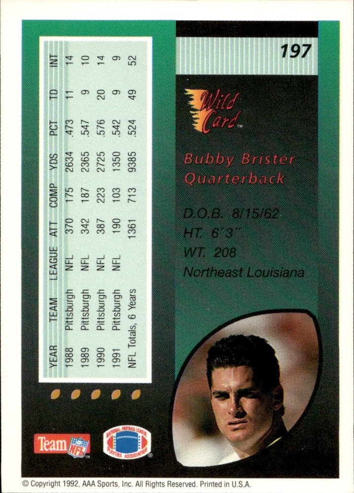 This Bubby Brister Wild Card card is a must-have for Steelers fans! The crisp, clear image makes it stand out, and the '92 season nostalgia is strong. Perfect condition, just as described—great addition to any football card collection. Highly recommended!