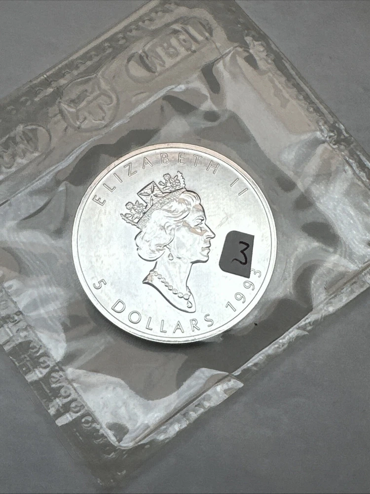 This 1993 Canadian Maple Leaf coin is made of 1 Troy Ounce of 0.9999 Fine Silver. It is in Business Grade and has not been graded. The coin is struck by the Royal Canadian Mint and comes in original packaging. The coin is a great addition to any collection and a good investment.