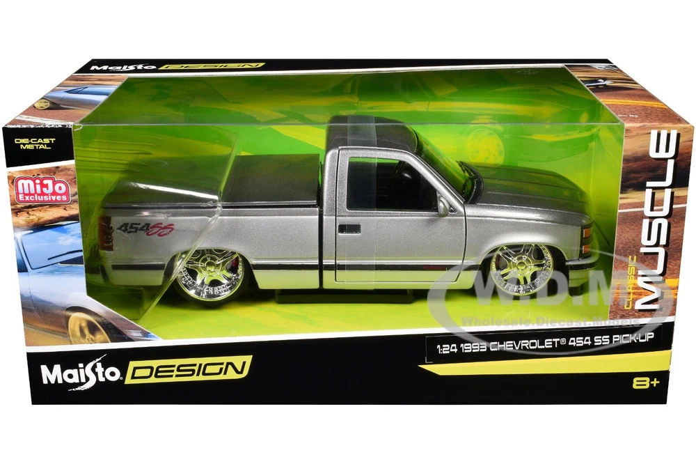 SAVE WHEN BUYING MORE!!! Buy as many items as you wish and we will ship them for one low shipping cost to 48 continental U.S. states physical addresses. Example: Shipping cost for most 1/24 scale items is $10, for 1/18 scale items is $12. If you use Add to cart button and purchase 5 items in 1/24 scale and 5 items in 1/18 scale, your shipping cost will be only $12 for 10 items. In order to request combined shipping for signed in desktop users: Please use Add to cart button for desired items, click Go to cart button and press Request total from us before paying and we will send combined shipping invoice shortly. If checking out as a Guest or using a mobile version, please use Add to cart button then click Go to cart button , press Go to checkout button, request extra shipping refund in Message to seller section and finalize payment by pressing Confirm and pay button. We will refund extra shipping cost shortly. DESCRIPTION: Brand new 1/24 scale diecast car model of 1993 Chevrolet 454 SS Pickup Truck Silver Metallic and Gray "Lowriders" "Maisto Design" Series die cast model car by Maisto. Brand new box. Real rubber tires. Has opening doors. Detailed interior, exterior. Officially licensed product. Made of diecast with some plastic parts. Manufacturer's original unopened packaging. Dimensions approximately L-7.75, W-3.25, H-2.375 inches. PAYMENT INSTRUCTIONS: We gladly accept paypal. Tracking info is free upon request. SHIPPING INFO: We do combine shipping cost for two or more items purchased. Please check shipping and payment section. In order to receive combined invoice for multiple purchases, please purchase items and let us know when you are done shopping, so we can send you one combined invoice. We can only combine shipping cost if items paid in one transaction. Dear Valued Customer! We appreciate your business. BUY WITH CONFIDENCE Fast Order Fulfillment 99% of orders are shipped within 24 hours or sooner. Simple Return Policy Thirty days simple returns. More than 10 Years of Experience Family owned and operated, we’ve had the experience of selling online for more than 10 years. Satisfaction Guaranteed! Our feedback says it all. And now, we hope to have the chance to prove we are the best to you! Competitive Pricing and Unrivaled Selection We are the number one direct distributor of diecast model cars in the USA, so we are able to provide very competitive pricing. Our stock selection is unrivaled with over 4,500 different items. Quality Shipping & Handling We package all our orders with care using bubble wrap to protect models from damage in transit. Each model that has a fragile window box is covered with carton protection. Excellent Customer Service Our customer service is second to none with thousands of returning, satisfied customers from all over the world.