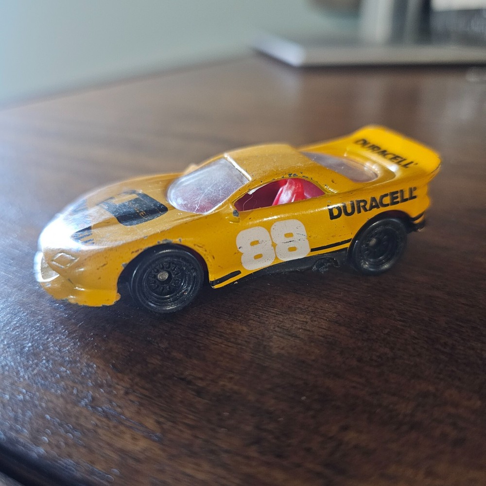 This vintage 1993 Hot Wheels Duracell #88 race car is a 1:64 scale diecast model in yellow and orange colors. It was part of a Duracell promotion series by Hot Wheels and features advertising specimen branding. The car is designed with a racing theme and was manufactured in China in 1993. Suitable for ages 3 and up, this collectible piece appeals to both boys and girls who enjoy toy vehicles in the 1:64 scale range.