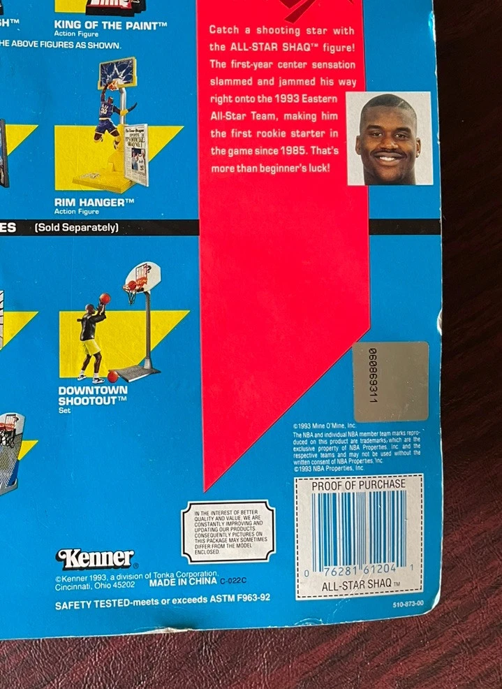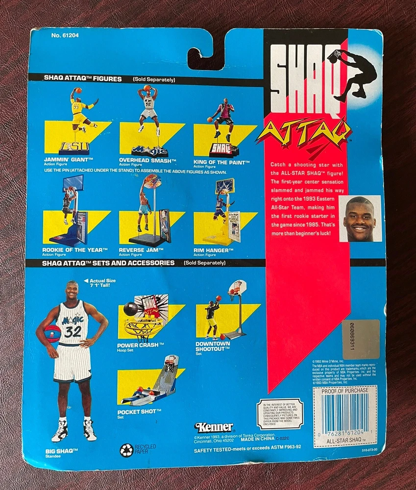 1993 Kenner Shaq Attaq All Star Shaq Figure Shaquille O’Neal Orlando Magic Package approximately 11 x 9 inches, Figure approximately 7 x 2.5 inches Photos of actual package that you will receive