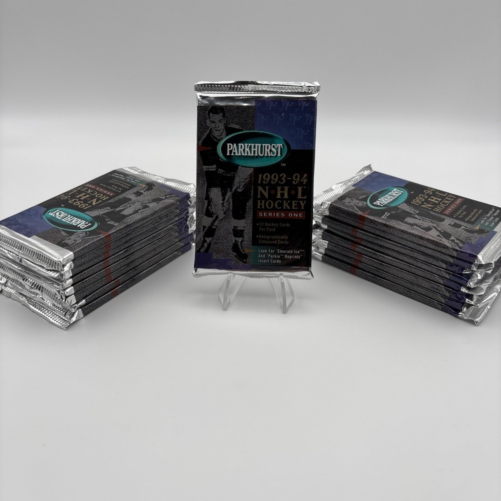 This lot of 17 1993 Parkhurst Series 1 NHL Hockey Cards includes a total of 102 cards, with each pack containing 12 cards. These standard-sized trading cards feature players from the National Hockey League (NHL) and are part of the 1993-94 Parkhurst set. Manufactured by Parkhurst, these cards are not autographed and are factory sealed, ensuring the authenticity and quality of the collection. Ideal for ice hockey fans and collectors, this lot offers a glimpse into the excitement of the 1993 NHL season.