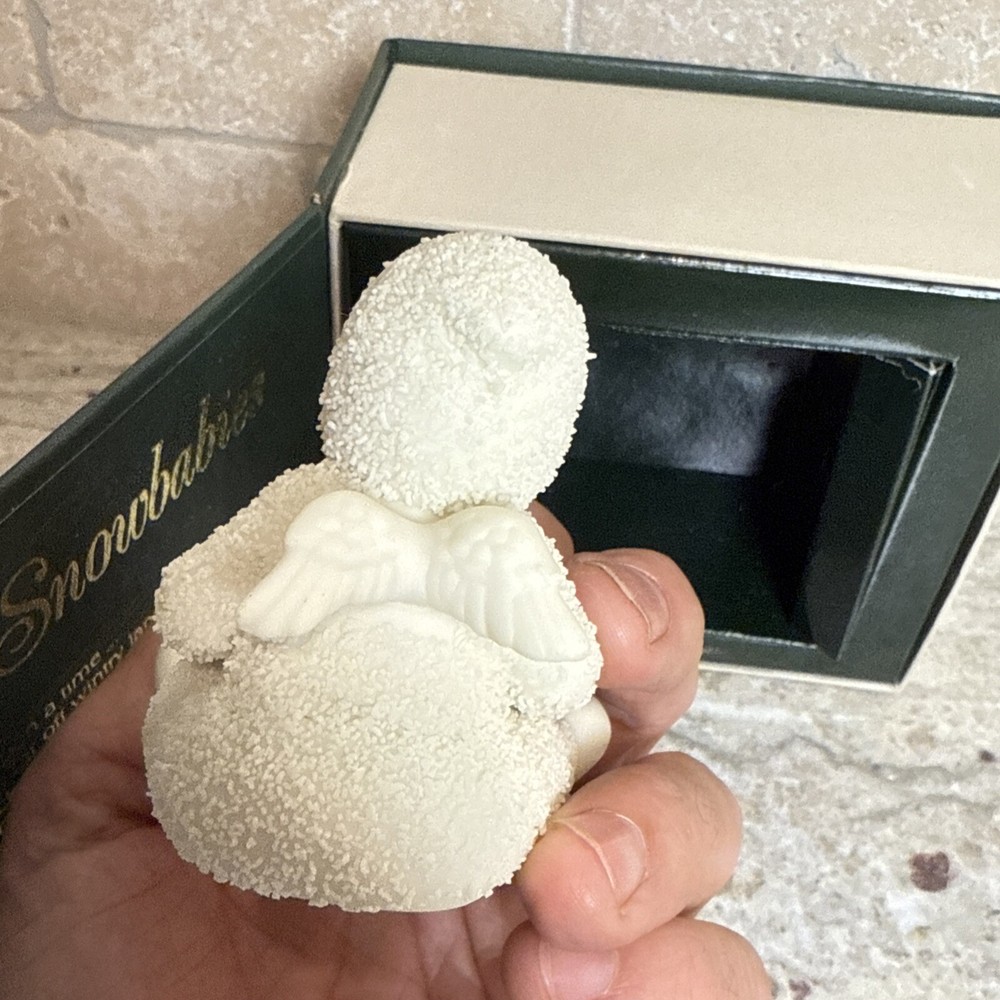 This Snowbabies figurine is a charming addition to any collection. Made from ceramic and porcelain, it features a cute angel design with a white color finish. The figurine stands at 2.75 inches tall and is part of the Snowbabies collection from 1993. Perfect for collectors or as a holiday decoration, this Snowbabies figurine is sure to bring joy to any setting. The event piece #6838-1 adds an extra touch of whimsy to the design. Don't miss out on the opportunity to own this delightful piece of Snowbabies history.