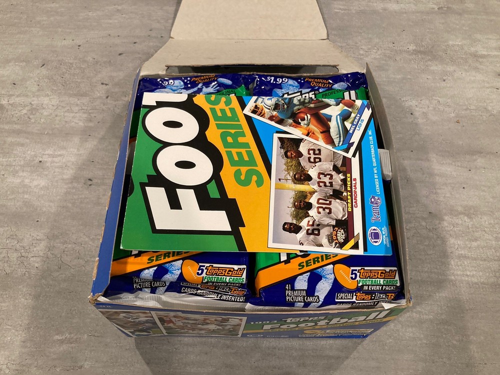 You are receiving all of the items shown in the pictures. The box is not factory sealed but all 24 packs are factory sealed. Poster is also included, as shown. Box does show wear from price sticker removal in upper right corner and wear on UPC on bottom of box. Some slightly smushed corners on box and general wear on box. Sorry about the shadow and glare in the photos. Ships via USPS.