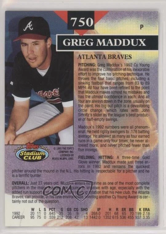 1993 Topps Stadium Club Members Choice 1st Day Issue Greg Maddux #750 HOF