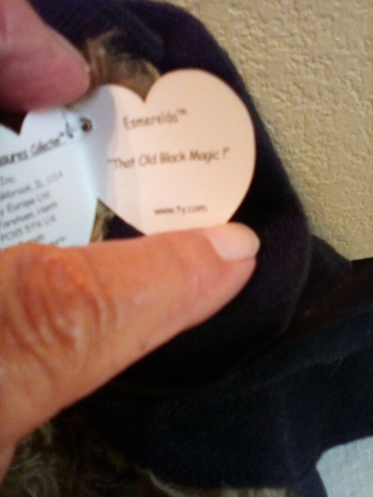 Esmerelda come's dress in her black cape and witches hat. Her hat does not come off, it's glued to head, but she is a cute little witch. Has been stored since the day I bought her. If any questions please feel free to contact me.