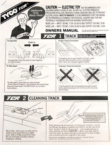 This listing is ONE (1) TYCO TCR, Total Control Racing, vintage 1993 Slotless HO scale slot car RACE SET. The components are all New Old Factory Stock that was originally intended to be used to assemble race sets. All track needs some scotch-brite pad brightening of the rails. WD-40 on a rag will help rejuvenate the track appearance & will help to repel moisture. The TYCO TCR system will accept vehicles like Aurora Speedsteer or Ideal TCR as well. On my web site, under guides, i have several in depth essays on TCR racing. The AC powered system works well & has a degree of difficulty that is unexpected. Although the entire track system has integrated guardrails, flying off the track is still probable at higher speeds. Shifting lanes is actuated with a steering wheel on the controller. Applying the wheel while going too slow results in a vehicle stall; do it too late, & the corner wall divider, takes you out. Adding a JAM car creates a situation where one has to get around the moving obstacle! Using a second JAM vehicle (available separate) allows one car to go in each direction to warm up the track. JAM vehicles are very inexpensive. Typical is a Mustang 5.0 or an Emergency Van. A WARM TRACK MAKES FOR A WELL PERFORMING TRACK. TCR RACING IS A HOBBY & NOT A TOY. Adult supervision, setup & participation are CRUCIAL to a good user experience. Everything is included to get started. Parts, Vehicles & Track Accessories are widely available. INCLUDED IN THIS LISTING ARE: (1) 15" Terminal Straight Track, (5) 15" Straight Tracks, (8) 9" Straight Tracks, (12) 1/4 9" Curves, (2) Speed Controllers, (1) AC Transformer, (6) Obstacle Pylons & a Scotch-Brite cleaning pad. The SIX (6) Vehicles Included are: a Yellow Ford Mustang 5.0 JAM car, a yellow Pennzoil #30, Tide #5, Red Ferrari Street, Red Ferrari #3, and Black and Green TYCO TCR #34. Also included is a free extra parts chassis, less only the tires! SHIPPED IN A USPS PRIORITY MAILING BOX. NO RETAIL BOX IS INCLUDED. Not fancy, but very cool to be this fresh after 25 years! Assembled from bulk packaged, new old, unused factory stock. All track requires initial buffing of the rails for best performance. PLEASE NOTE: NOT ALL CARS ARE THE SAME SPEED. Cars vary in original speed, speed over time & time before a reconditioning is needed. Some maintenance on chassis can increase performance. Some users find running the chassis on a 9V battery for 1/2 an hour initially, breaks in the chassis, allows the carbon brushes to seat against that armature & generally prolong the livelihood of the chassis. SOME CHASSIS NEVER PERFORM GREAT & ARE DESTINED TO BECOME PARTS DONORS. Always good to have extra chassis & parts around as both are very inexpensive. Sold as is. Descriptions are very accurate; No Returns. PLEASE ASK QUESTIONS BEFORE YOU BUY IF YOU ARE UNSURE. We ship promptly & professionally. We happily combine orders & refund any excess s/h immediately upon shipping. We can always provide tracking. I charge $1 for expert handling/packaging, & actual shipping. We ship out of the country almost daily. Please refer to our feedback, social media or time selling HO slot cars for assurances of a good honest deal. Happy motorin' & thanks S'lots from Bob at Slot Car Central in SYR. We Know H.O.