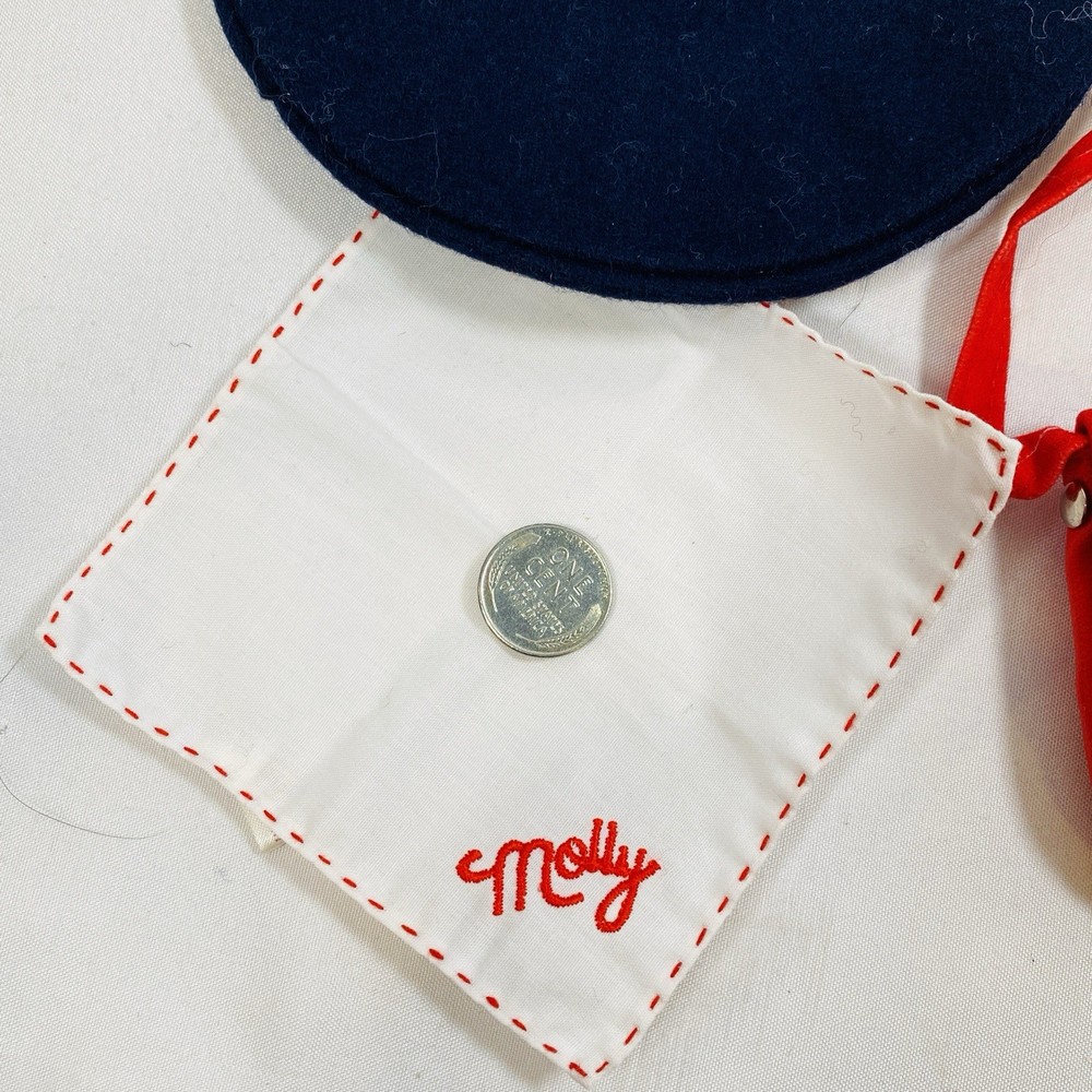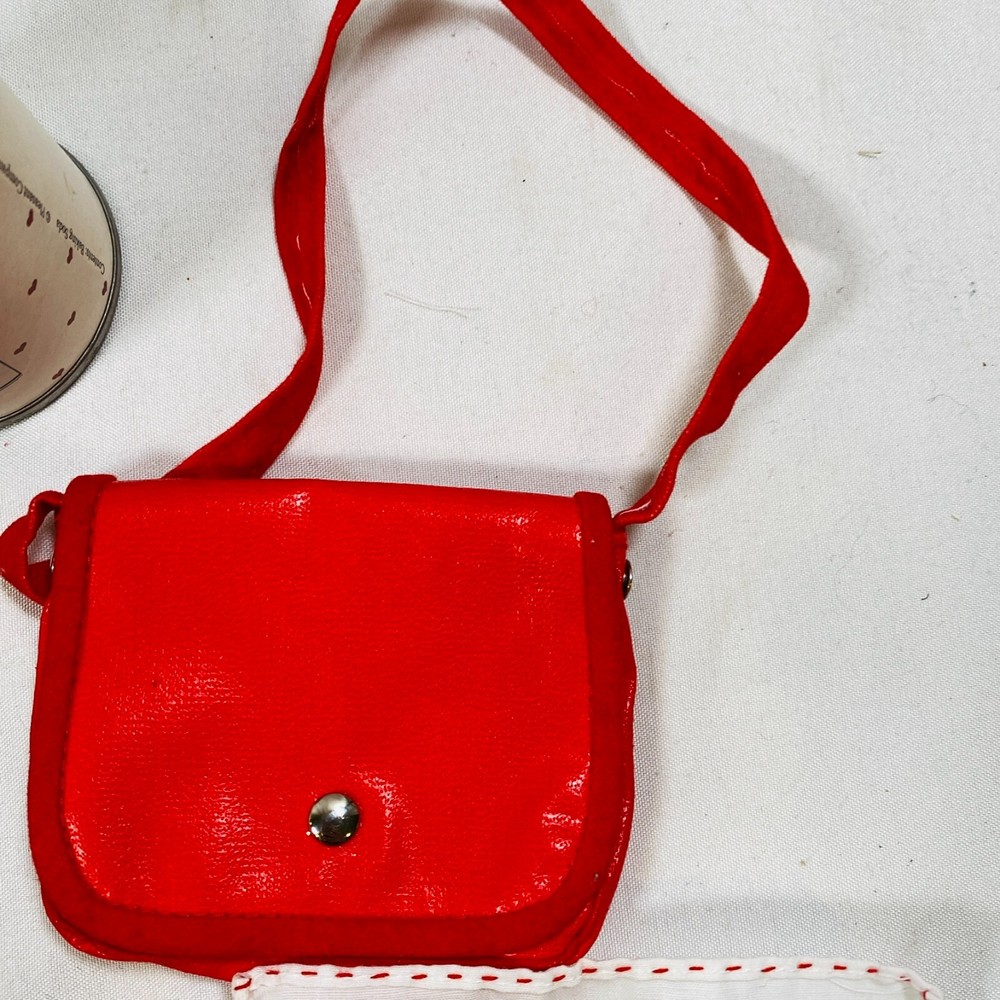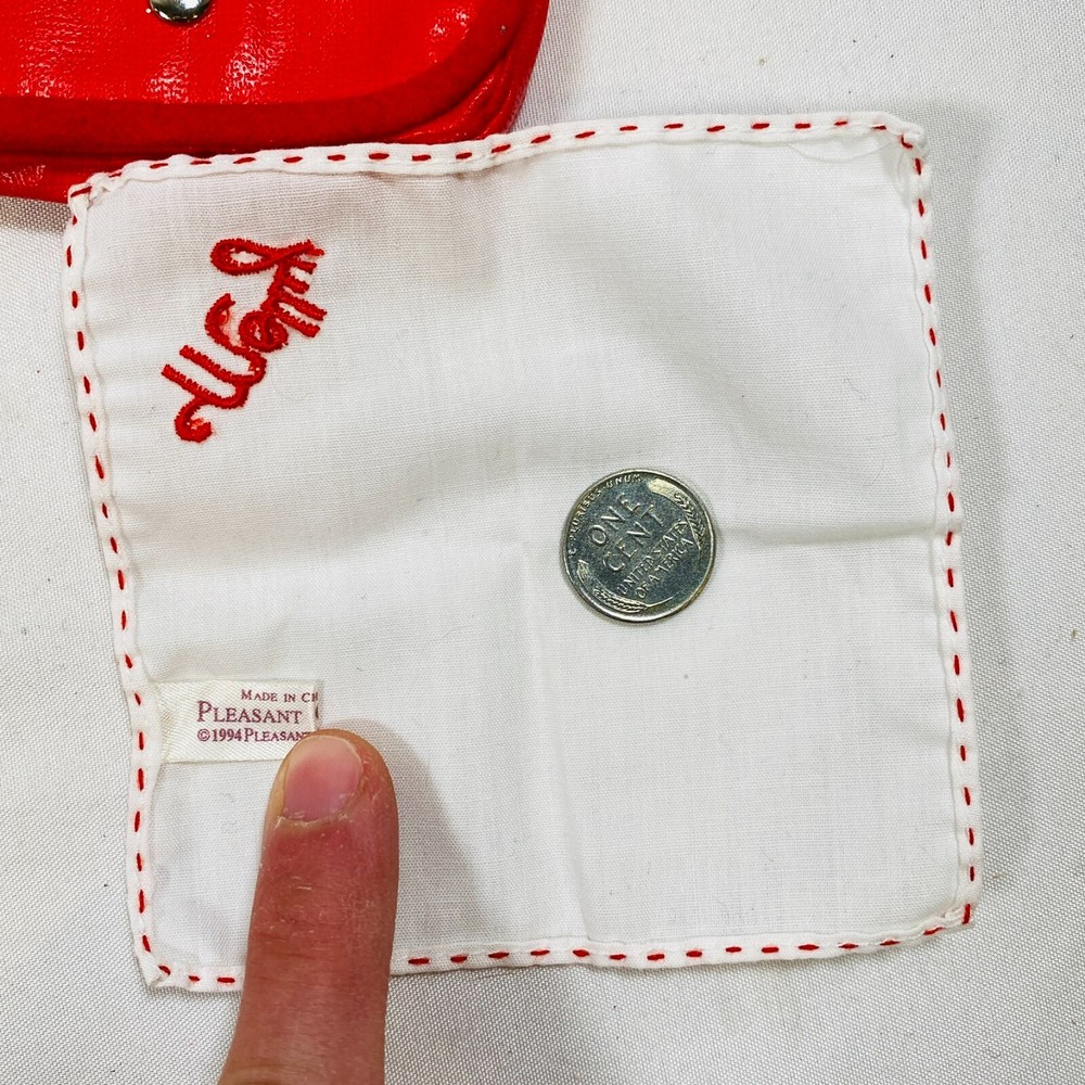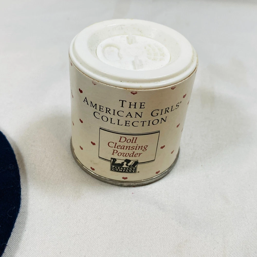 18" American Girl Doll Molly's Meet Accessories Set. Tagged 1994 Pleasant Company. Includes Beret Hat, Red Purse, Embroidered Handkerchief, and Coin. Also includes bonus Doll Cleansing Powder. In excellent condition, no flaws noted beyond some minor discoloration on powder container. Please see all pictures for exact cosmetic condition and other details, as they are part of the description as well, and ask any questions before purchasing. We are a husband and wife team with a growing family, and greatly appreciate your support of our small business. Please browse our eBay store for a variety of other American Girl items. We hope you enjoy this set!