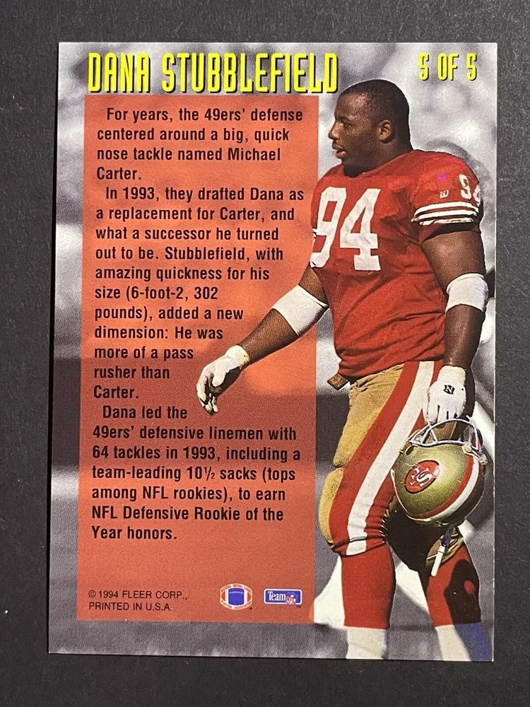 1994 Fleer Dana Stubblefield Award Winners Insert Card #5 - San Francisco 49ers