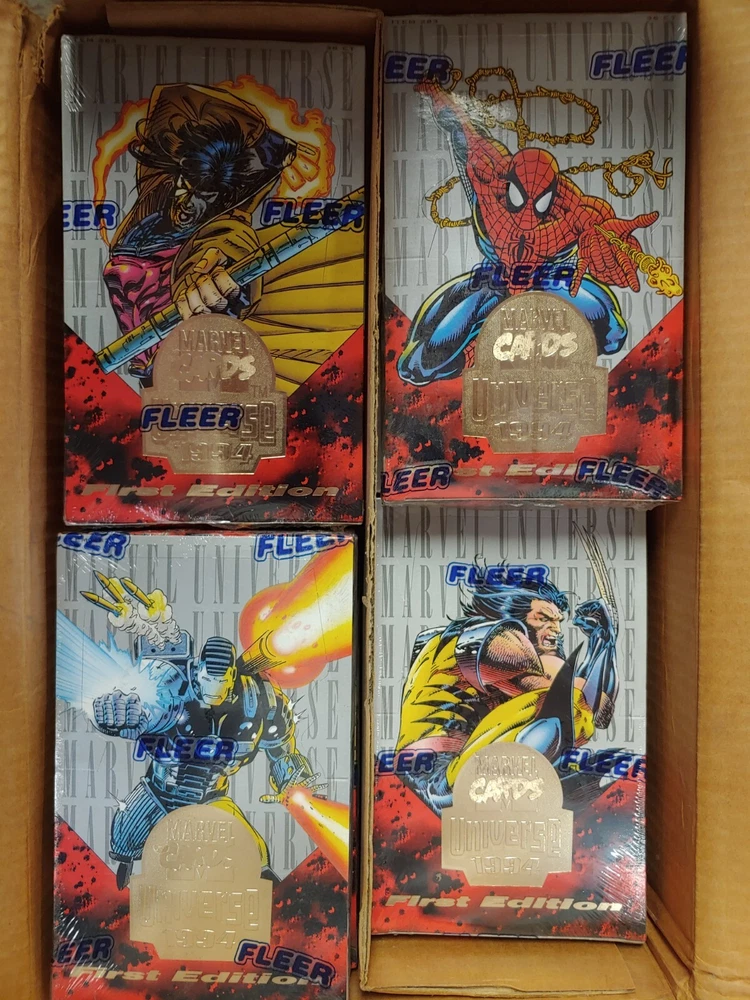 Very RARE 1994 Fleer 1st Edition Marvel Universe Factory sealed boxes. This price will be for 4 FOUR boxes. It will be one box of each of the cover art characters. 1x Wolverine 1x Gambit 1x War Machine 1x Spider-Man.