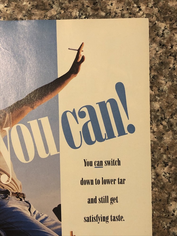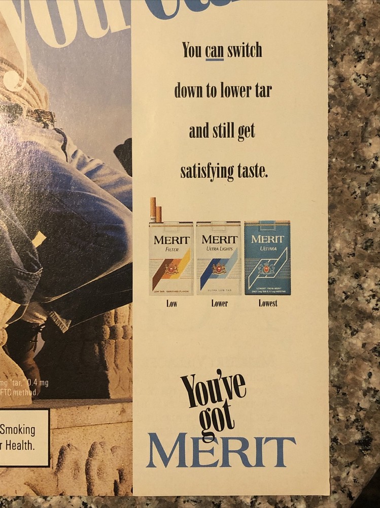 This vintage 1994 Merit Cigarettes print ad features a bold and playful design with a multi-color theme. The ad is a magazine print ad that showcases the brand's unique selling point of "You've Got Merit". The page measurements are approximately 8"x11" and the ad was manufactured in the United States during the 1990-Now time period. The ad is a great addition to any collection of advertising memorabilia and is perfect for anyone interested in the history of cigarette advertising. The Merit brand is known for its quality and this ad is a testament to their legacy. Add this vintage ad to your collection today!