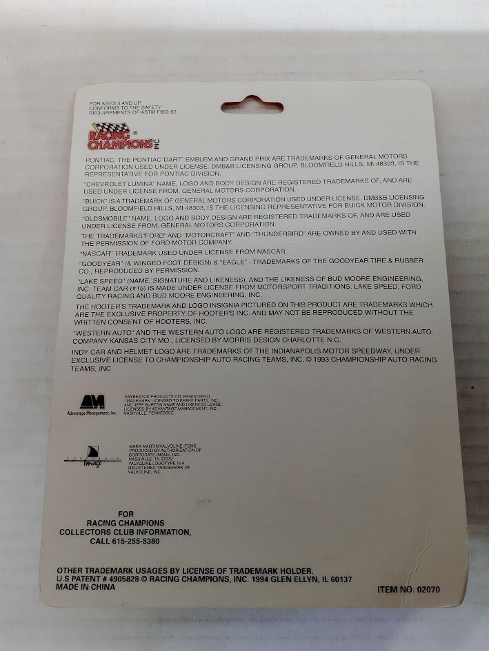 1994 Racing Champions NASCAR Brickyard 400 1:64 Die-Cast Inaugural Car