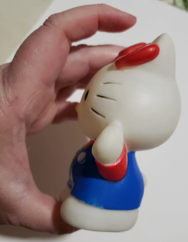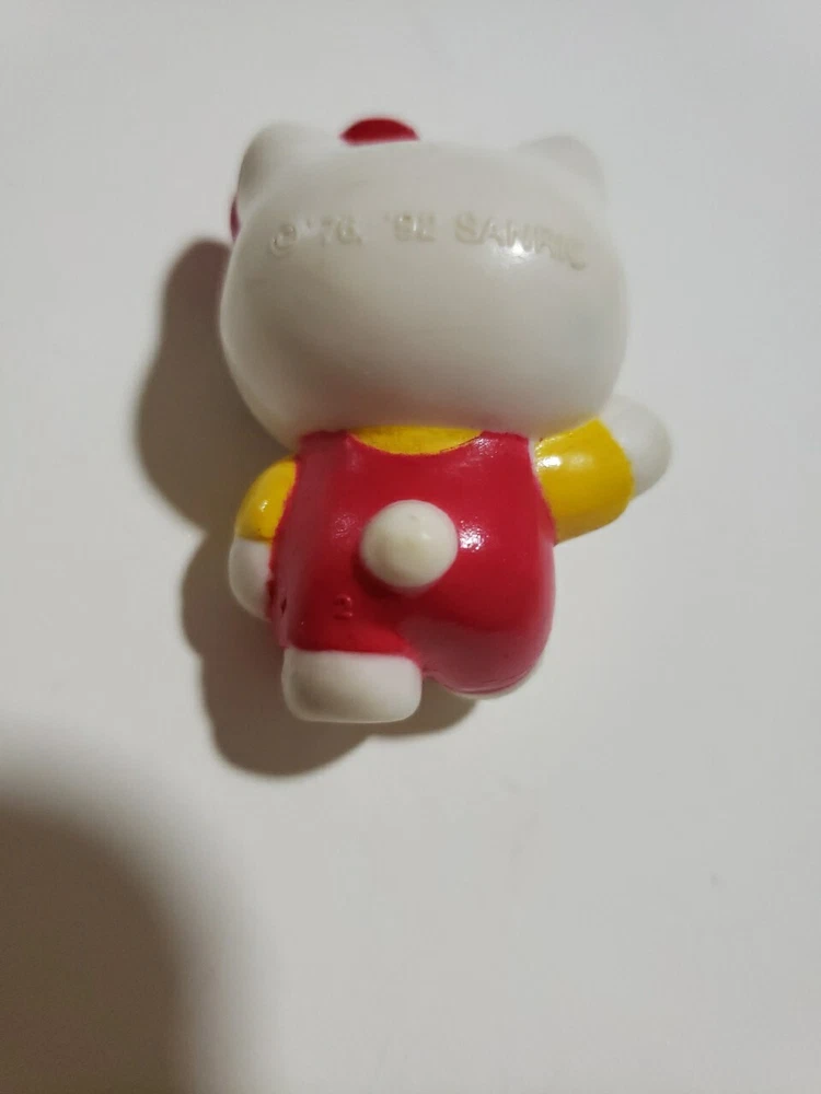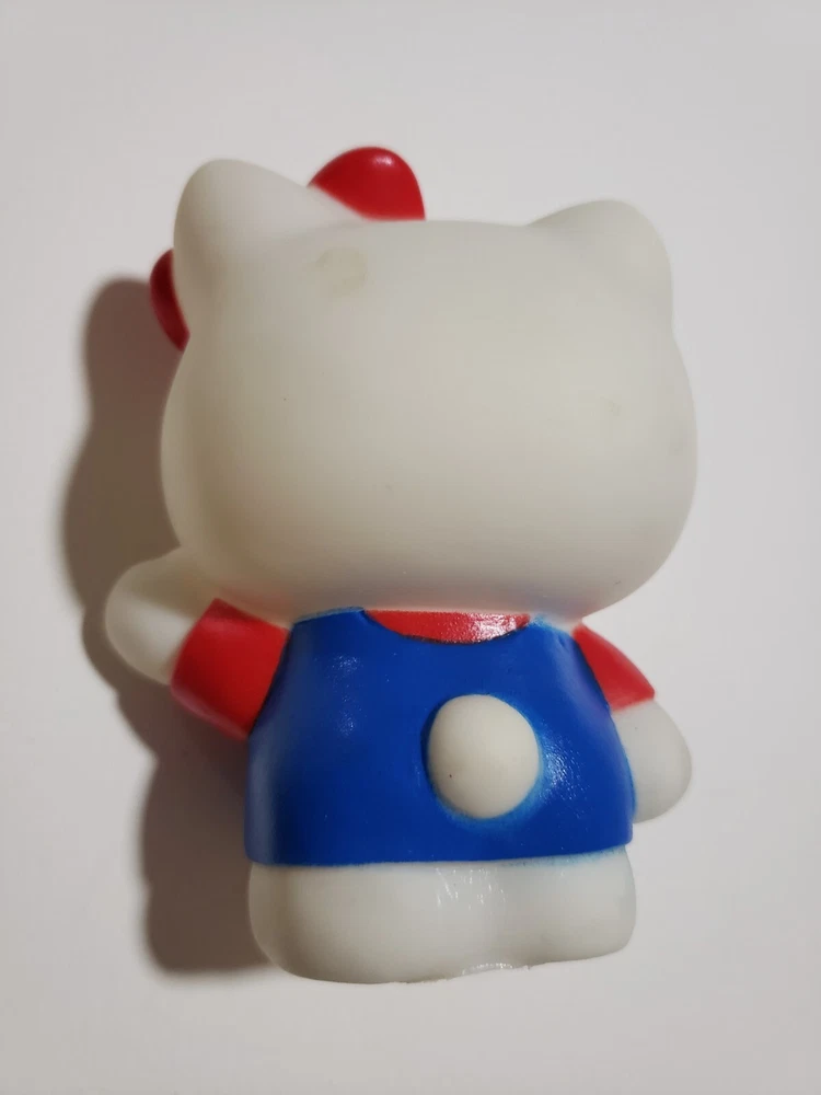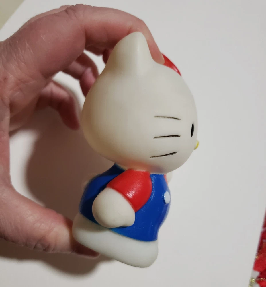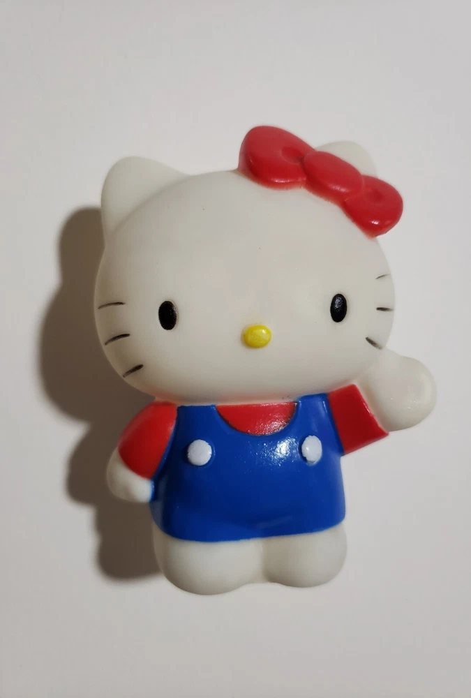 This 1994 Sanrio Hello Kitty toy figure is a must-have for any fan of the franchise. The 4-inch tall figure features Hello Kitty in a red shirt and blue overalls, made of plastic material. It also has a rubber squeaky feature that adds to its charm. The toy figure is a rare find and a great addition to any collection. It was manufactured in China and is part of the Animation, Anime & Manga theme. The figure is colorful and eye-catching, perfect for any Hello Kitty fan. Get your hands on this unique and adorable toy figure today!
