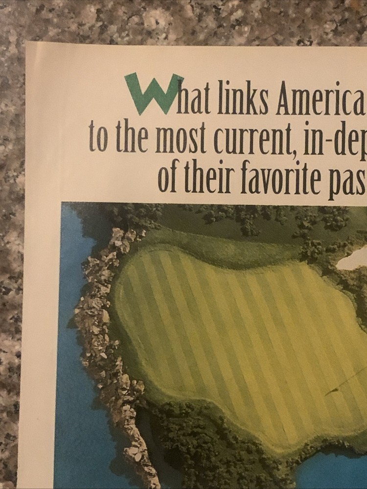 The product is a vintage 1994 Sports Illustrated magazine print ad featuring an aerial view of a golf green shaped like the USA map. The ad is colorful and measures approximately 8"x11". It is related to SI Golf and was created in the United States in the 1990s.