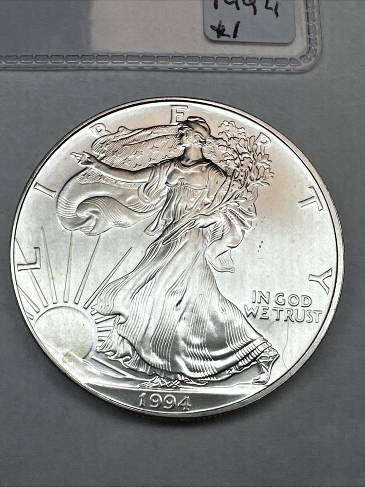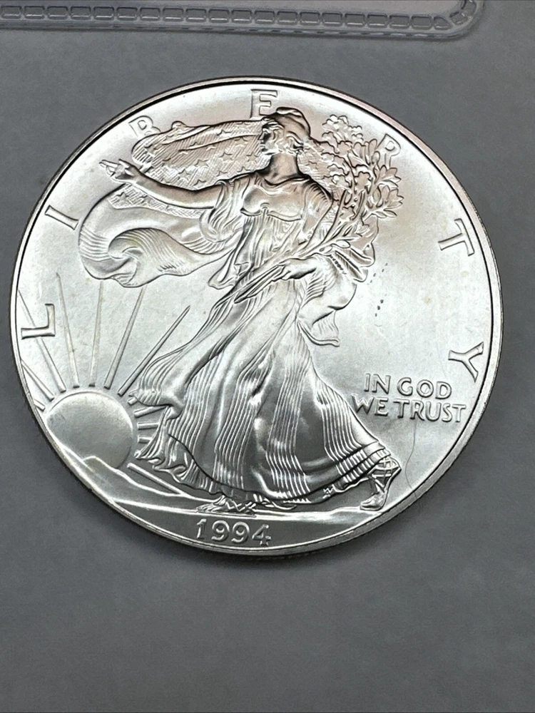 The product is a 1994 US American Silver Eagle coin, minted by the U.S. Mint. It contains 1 oz of .999 fine silver, making it a valuable addition to any collection. This particular coin is considered a key date, adding to its rarity and desirability among collectors. It is in uncirculated condition and comes uncertified.