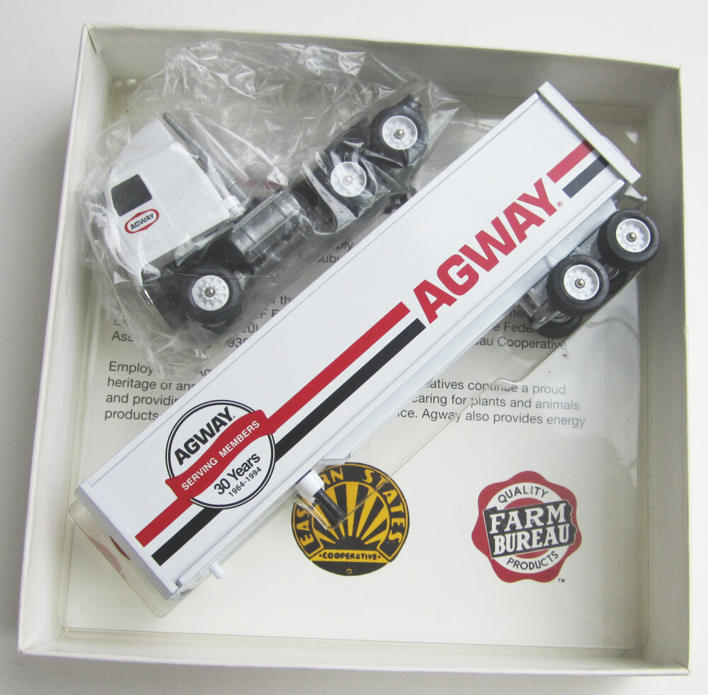 Vintage 1994 Agway Mack truck semi hauler 9" long (approximately 1:43 scale) diecast metal tractor trailer collectible vehicle from Winross, new and unused condition in original opened box, never used or displayed. White color, measures around 9" long altogether. Box is still in great condition, minor storage wear if any, was only opened once to ensure everything is fine (it is). Ships FAST in a sturdy unmarked cardboard box! No worries! COMBINED SHIPPING: If you are buying multiple cars, we offer combined shipping for ACTUAL ship cost, no extra charge. Simply "Agree to Buy" the items, then choose "Request Invoice from Seller." We will contact you as soon as possible with a corrected invoice. RETURNS: Accepted ONLY if item is still in its originally shipped condition. We do not accept items that have been opened or altered by the buyer. CLICK OR TAP HERE TO SEE ALL THE HOT WHEELS LISTINGS IN OUR EBAY STORE! Tons of items, nearly all of them SEALED and NEVER OPENED! CLICK OR TAP HERE to visit our eBay Store and save on shipping with ONE INTERNET STOP! With over 1500 different items to choose from, we have something for every kid on your list (even the big ones)! Buy with confidence from us -- we have over 25 years experience selling on eBay and other venues!