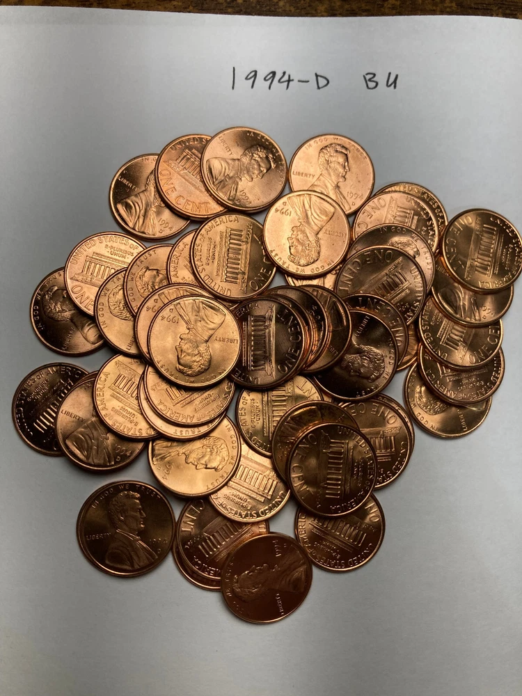 You are purchasing a full roll, 50 coins, of 1994-D Lincoln Memorial cents that are in BU condition. The photo shows a typical roll of the rolls that I am selling. I have several of these rolls to sell. Please read a note about shipping: I strive to ship at my cost. If you pay more at checkout I can refund the overage you may pay. Rolls and lots: $4.50 for the first roll and $1.50 for each additional roll; up to $8.50. I can ship up to 30 rolls (paper wrapped) for $8.50. Single coins up to 3 coins sold at $20 or less: $1.11 for eBay standard envelope. I ship all of these at 3oz since it is safer that way. Beyond $20 value shipping is $3.50. The best way to handle multiple item purchases is to put them in your cart and then ask for an invoice from seller. That way I can provide these shipping prices without having to issue a refund. I am not in this business to make money on shipping but I must charge costs involved. There is no such thing as free shipping. It is paid for by someone, usually in the cost of the item.Please read a note about shipping: I strive to ship at my cost. If you pay more at checkout I can refund the overage you may pay. Rolls and lots: $4.50 for the first roll and $1.50 for each additional roll; up to $9.00. I can ship up to 30 rolls (paper wrapped) for $9.00. Single coins up to 3 coins shipping is $3.50. This may sound expensive but it is less than my cost. The best way to handle multiple item purchases is to put them in your cart and then ask for an invoice from seller. That way I can provide these shipping prices without having to issue a refund. I am not in this business to make money on shipping but I must charge costs involved. There is no such thing as free shipping. It is paid for by someone, usually in the cost of the item.