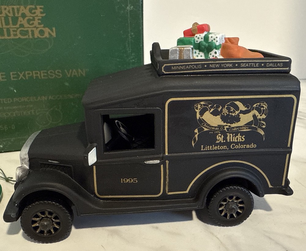 Dept. 56 Heritage 1995 Black Village Express Van St. Nicks Littleton CO 756-0 Pre-Owned excellent condition. See photos for best representation. Includes original box which has some blemishes from years of storage. See all photos. Thank you for looking and supporting my small business!