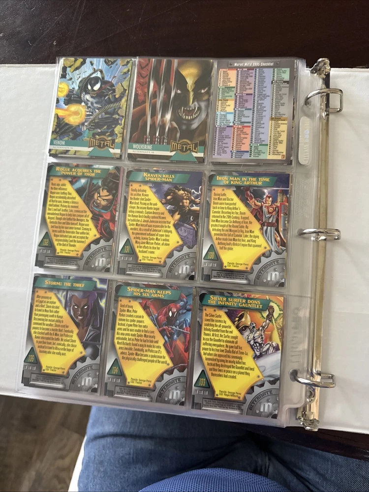 This 1995 Marvel Metal Fleer Set 1-135 is a must-have for any Marvel (MCU) fan. With a total of 135 cards, this non-sport trading card set is made of high-quality metal material and features the beloved characters from the Marvel franchise. Manufactured by Fleer, this set is a great addition to any trading card collection. The set includes base cards and is perfect for those who are looking to complete their collection or those who are just starting out. Whether you're a seasoned collector or a beginner, this set is a great way to get your hands on some of the most popular Marvel characters. Don't miss out on the opportunity to own this amazing set! Comes in a heavy duty 3-ring binder with cards in plastic sleeve pages.