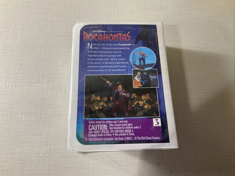 This 1995 McDonald's Walt Disney Collection Pocahontas Figure Happy Meal Doll Toy is a great addition to any fast food or cartoon character collection. Made in China, this toy is recommended for ages 4 and up. It features Pocahontas, a beloved character from the Disney movie, and is part of the McDonald's restaurant chain's collectible toys. This item is perfect for fans of the character family and collectors of fast food premiums.