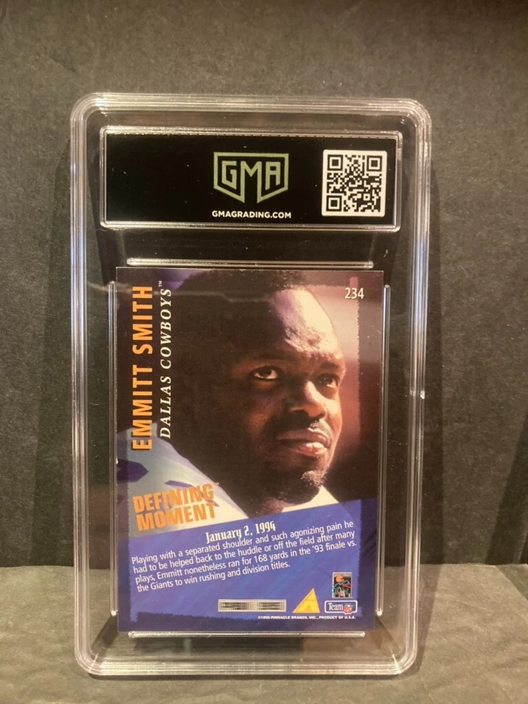 Card Number:234Series:Pinnacle Club CollectionSeason:1995Team:Dallas CowboysLeague:National Football League (NFL)Features:Base SetPlayer/Athlete:Emmitt SmithManufacturer:Pinnaclebrand:PinnacleSet:1995 Pinnacle Club CollectionSport:Football