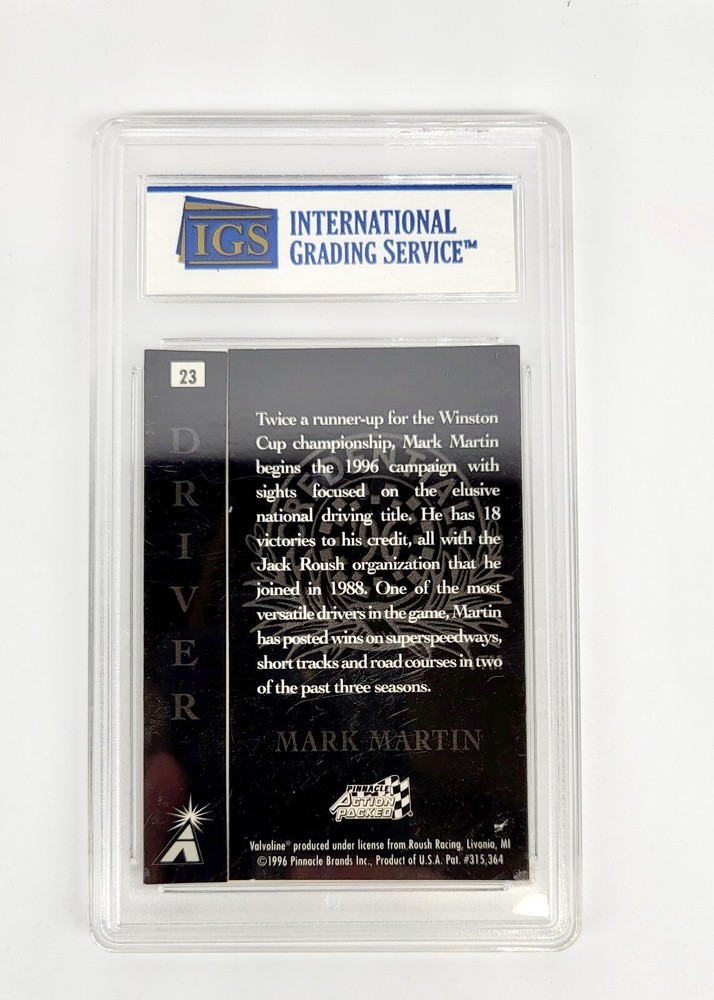 This rare and highly sought-after Mark Martin trading card from the 1996 Action Packed Credentials set is a must-have for any NASCAR or racing fan. Featuring a stunning silver design, this limited edition card is an original and comes from the exclusive Pinnacle Brands manufacturer. The card is a single-insert, short print, promo card with a card number of 23. It is a rare find and perfect for collectors looking to complete their Mark Martin collection. Don't miss out on the opportunity to add this exclusive, insert card to your collection today.
