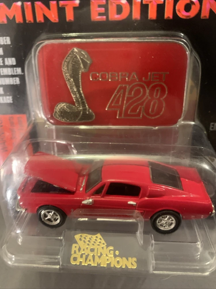 This limited edition 1:58 scale diecast model of a 1968 Ford Mustang is a must-have for any sport car enthusiast. The red colour and intricate details make it a standout piece in any collection. The model is part of the Racing Champions Mint Edition series and comes with a stand, making it perfect for display.