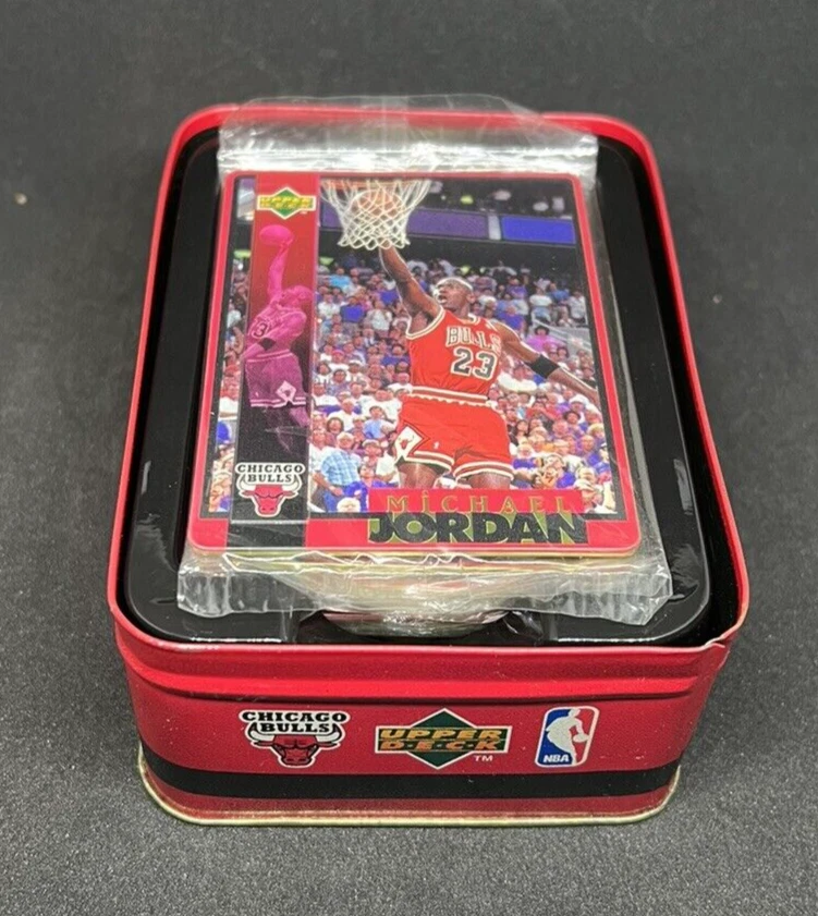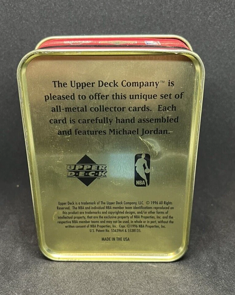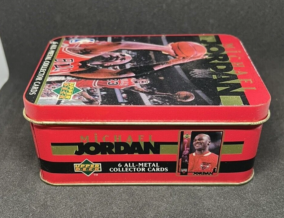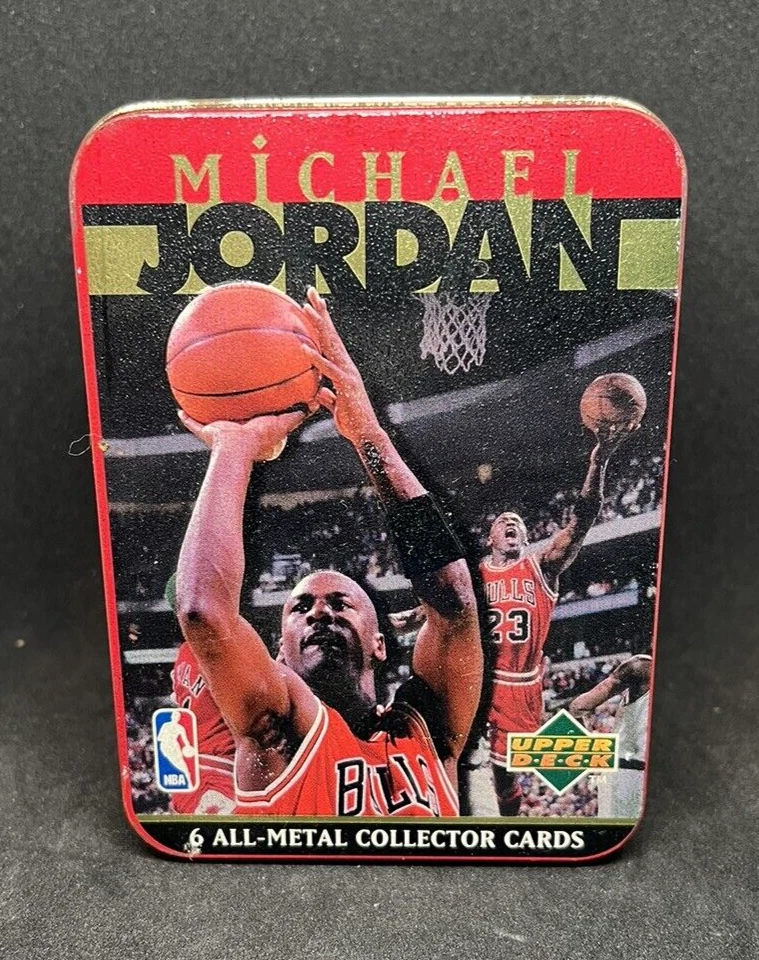 Please see pictures. Tin is in alright condition. Cards are still individually wrapped. 6 total cards, metal borders.