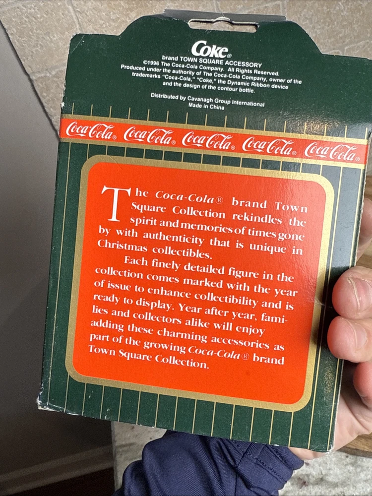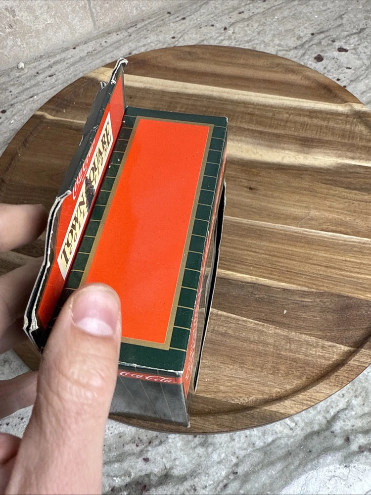 Number in Pack:1UPC:715429971083Original/Reproduction:OriginalSubject:Coca ColaMaterial:ResinHandmade:NoYear Manufactured:1996Room:Any RoomCountry/Region of Manufacture:Chinagtin13:715429971083Additional Parts Required:NoBrand:Coca-ColaTime Period Manufactured:1990-1999Signed:NoTheme:SeasonalColor:MulticolorCustomized:NoOccasion:ChristmasEra:Late 20th Century (1970-1999)Department:AdultsShape:SquareCharacter Family:Town SquareCustom Bundle:NoEngraved:NoPackaging:BoxModified Item:NoCollection:Town SquareFeatures:BoxedType:Christmas VillageAntique:No