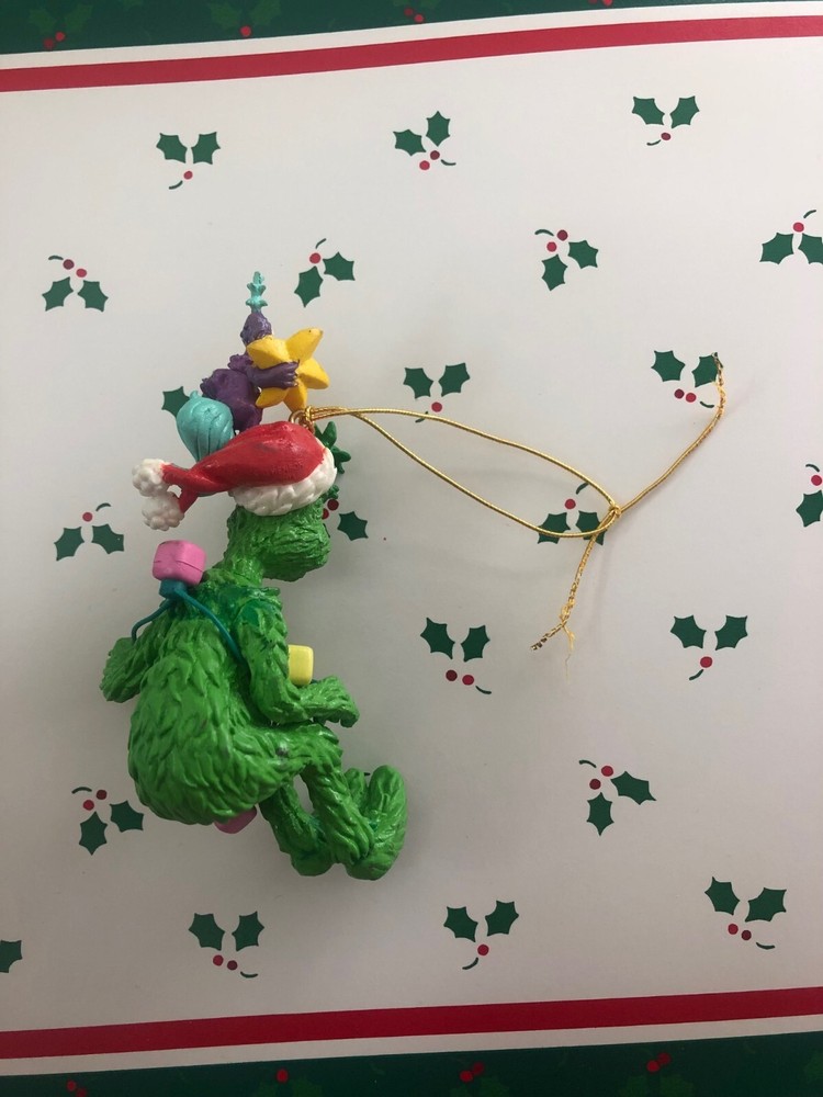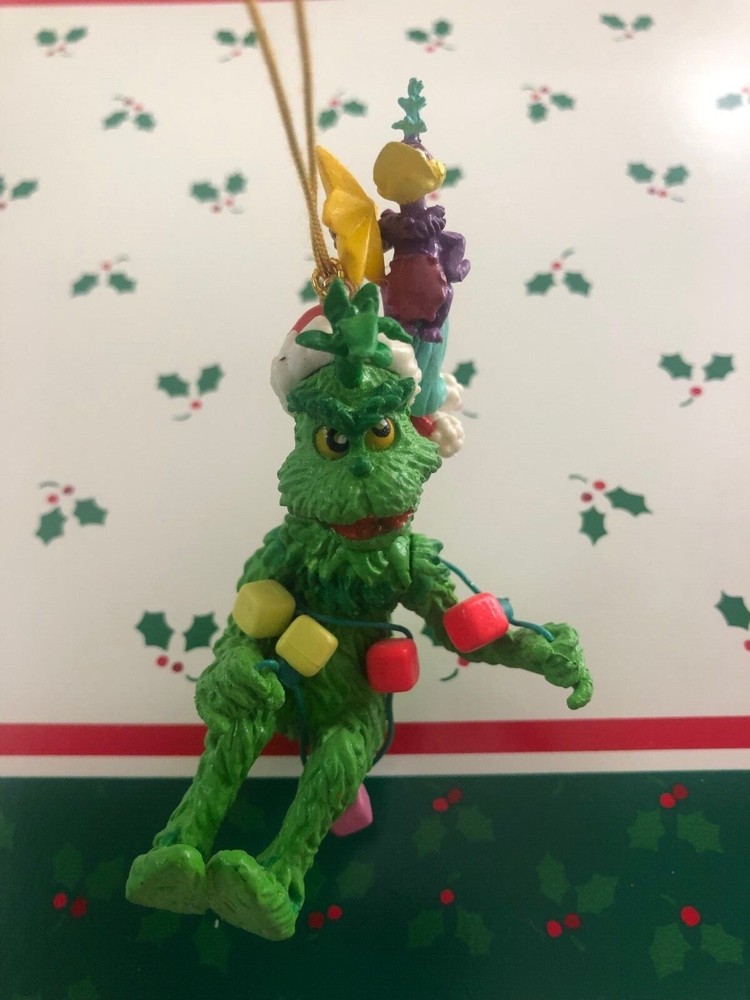 Set Includes: Ornament Character: Grinch UPC: 045544452724 Year Manufactured: 1997 Type: Ornament Theme: Seasonal Subject: Grinch Collection: Ornaments Brand: Seasonal Specialties Features: Hanging Franchise: Dr. Seuss Occasion: Christmas gtin13: 045544452724 Material: Plastic Time Period Manufactured: 1990-1999 Vintage: Yes