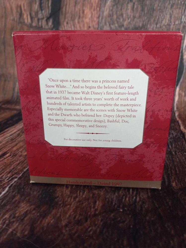 Year Manufactured:1997Character:Snow WhiteBrand:HallmarkCollection:OrnamentsType:OrnamentOccasion:AnniversaryTime Period Manufactured:1990-1999Modified Item:NoFranchise:DisneyCountry/Region of Manufacture:China
