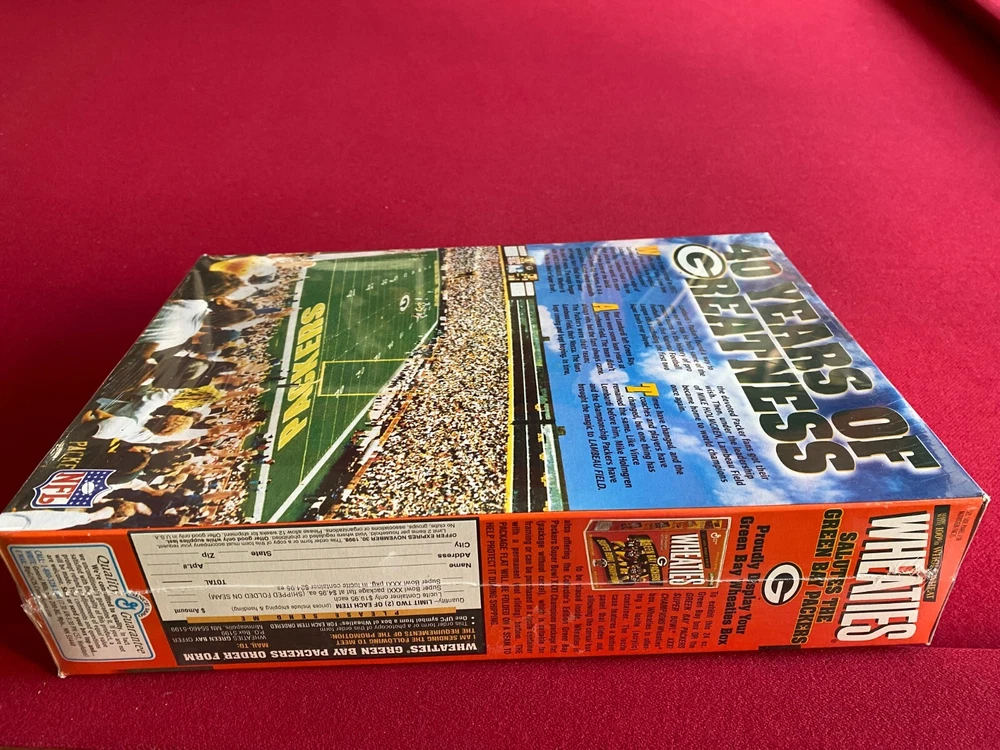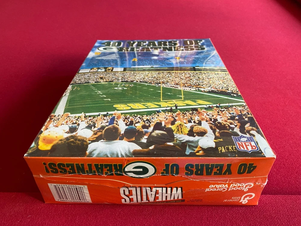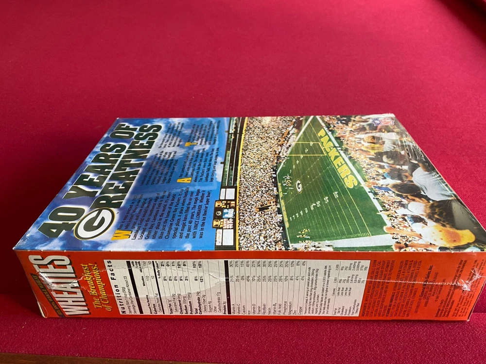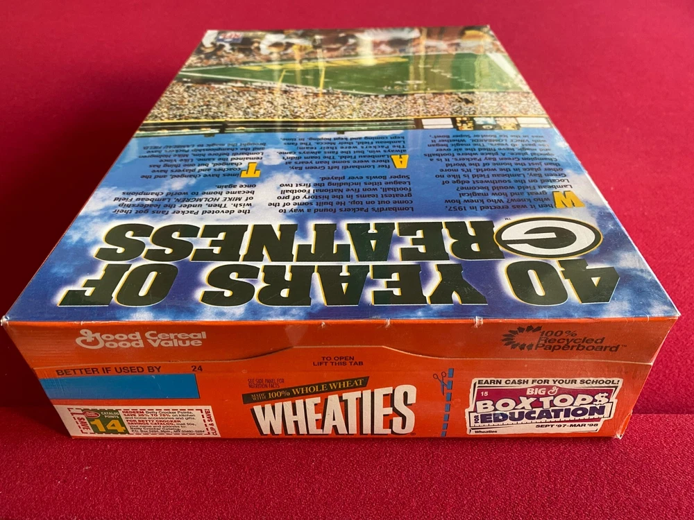 1997 , "LAMBEAU FIELD" / Vince Lombardi / Green Bay Packers ", (24 oz.) Wheaties Box (Empty), Scarce. A Great Display Collectible for the True Packers Fan!! "Brett Favre / Reggie White"