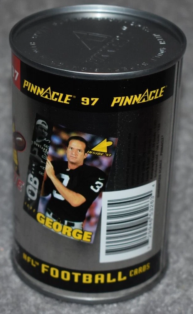 THIS IS A LISTING FOR 1997 PINNACLE INSIDE CARDS IN A CAN. CONTAINS 1 PACK OF CARDS WITH TEN CARDS IN THE PACK. THE CAN PICTURES OAKLAND RAIDERS JEFF GEORGE. IT IS NOT OPENED. IT MAY/HAS SLIGHT MARK/MARKS ON TOP/SIDES OF THE CAN AS PICTURE SHOWS. IF YOU HAVE ANY QUESTIONS PLEASE CONTACT ME BEFORE PURCHASEING THE ITEM. GREAT COLLECTORS ITEM. I ACCEPT EBAY ONLINE PAYMENTS AND PAYPAL. MOST ORDERS ARE SHIPPED IN ONE BUSINESS DAY. THANKS FOR LOOKING AND HAVE A GREAT DAY. On Sep-18-02 at 02:56:00 PDT, seller added the following information: After purchasing, pay instantly with your credit card through PayPal!