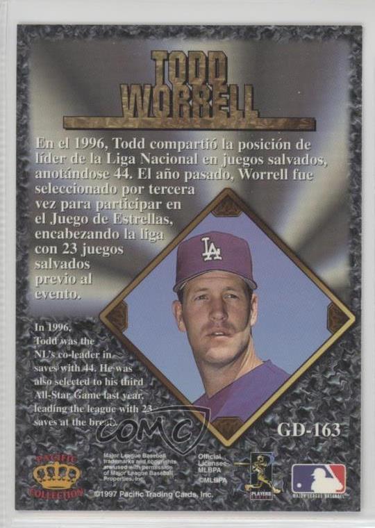 1997 Pacific Crown Collection Prism - Gems of the Diamond #GD-163 Todd Worrell - Baseball Card - Featuring the Los Angeles Dodgers - Featuring Todd Worrell Search for more: 1997 Pacific Crown Collection Prism Search for more: 1997 Pacific Crown Collection Prism - Gems of the Diamond View all of our Listings Auctions Buy It Now About Us Located in the beautiful Pacific Northwest, COMC (Check Out My Cards) is the world's largest consignment service for trading card singles. More than 10,000 people have used our consignment service to list over 50 million trading cards. Find out how we can help you consign your items on eBay by contacting us through eBay messaging. COMC -- "The Safe & Easy Way to Buy & Sell" Representative Image - Select Specific Item above to see image of actual item Representative Image - Select Specific Item above to see image of actual item Raw Condition for Modern Cards Unless otherwise noted, raw modern cards are listed in Near Mint-Mint condition or better. A NM-MT card appears to be Mint at first glance, but upon closer inspection, may exhibit some of the following: minor print defects (e.g. roller marks, print line, dimple), minor scratches, slight edge wear, and slight corner wear. Centering is clearly visible in the images provided and does not factor into our condition assessment. Raw Condition for Vintage Cards Unless otherwise noted, raw vintage cards are listed in Excellent condition or better. An EX card may exhibit some of the following: minor rounding of corners, surface wear, print defects, light scratches, and slight edge wear/chipping. Centering is clearly visible in the images provided and does not factor into our condition assessment. Domestic Shipping Combined shipping for multiple items is available. To receive combined shipping, please ensure all desired items are in your eBay shopping cart before proceeding to checkout. eBay limits orders to 40 items per order. We automatically combine multiple orders placed on the same day. If you place multiple orders on the same day, please contact us to request a refund of applicable shipping costs. Signature confirmation may be required on invoices over $400. All cards are protected and shipped securely. International Shipping COMC offers eBay's International Shipping (EIS) for international orders under $2,500* (see country exceptions below). All duties and import fees are paid at checkout; in the rare event that there are additional import fees upon delivery, these are borne by the buyer. EIS packages route through a shipping hub in Erlanger, KY before shipping to their final destination. Please note that EIS does not allow for combined shipments. The shipping rates are determined by eBay and cannot be adjusted. *Maximum sale price exceptions: Colombia, Kuwait ($2,000); Taiwan ($1,539); Chile, Costa Rica, Guatemala, Honduras, Trinidad and Tobago ($1,000); Antigua and Barbuda, Aruba, Belize, Dominica, Grenada, Philippines, Saint Kitts and Nevis, Saint Lucia, Montserrat, Turks and Caicos Islands ($500); Dominican Republic, El Salvador ($200). Please request a shipping quote through eBay messaging for orders that exceed the maximum sale price supported by eBay's International Shipping. You will be responsible for all duties and import fees for international orders shipped outside the EIS. All cards are protected and shipped securely. Payment COMC does not accept offers on our cards through our eBay storefront. COMC utilizes eBay’s managed payments system. If you are experiencing difficulties making a payment, please contact eBay for assistance. Return Policy Returns are only accepted on the rare occasion the item is not as described. If you are making a return, please initiate the return process through eBay so a mailing label can be provided for you. Prior to listing, our expert team carefully assessed this item to represent it accurately. Please review the description and high-definition images prior to purchasing to ensure this item meets your satisfaction. We welcome you to contact us if you have further questions about this item. Trust and Integrity COMC carefully assesses each item consigned to us to prevent fraudulent items from entering the marketplace. If you believe an item offered on COMC may be fraudulent, please contact us with details so we can investigate the issue. Items we determine are outside our supported items policy may be removed. Last Modified: 3/2/2025 1:51:03 AM PDT
