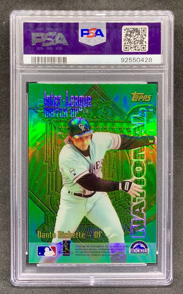 1997 Topps KEN GRIFFEY Jr DANTE BICHETTE Inter League Match Ups Refractor SP Mint PSA 9 Graded cards may have minor scratches or scuffs on cases that do not affect the condition/grade of the card. Please review scans carefully before bidding or purchasing. Cards are shipped securely in bubble mailers via USPS Ground Advantage mail unless otherwise stated. Higher value cards may be shipped in boxes via FedEx. Shipping for this item is $4.50 with shipping discounts available for multiple items won. Please see our store for other items.