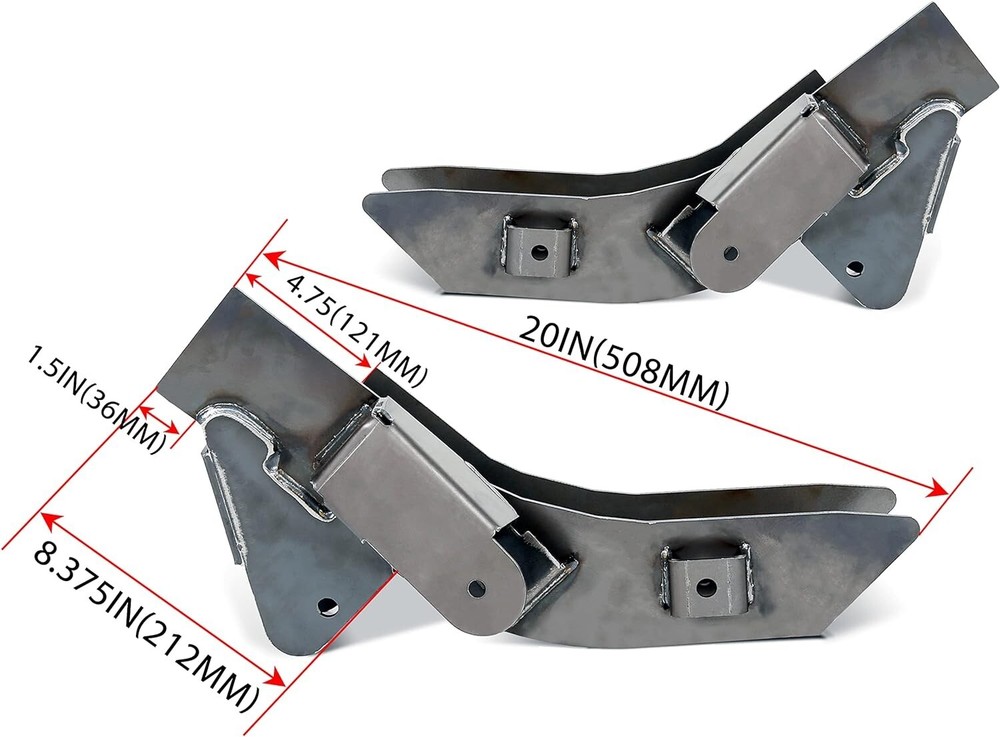 This item is designed fix to the area in front of the passenger rear axle and driver rear axle where rot typically occurs, directly compatible with 1997-2006 Jeep Wrangler Passenger & Driver Side On your previous, there is a factory drilled access hole, which allows debris and water to enter and create rust over time Constructed of 10 gauge rolled high carbon steel, which is thicker and stronger then your existing frame. Piece measures 22" end to end Kit includes both upper and lower control arm mounts. NOTE: 2 Packages Delivered NOTE: This is a weld on replacement bracket. Moderate welding skills required. You will need to delete the bottom 2/3 of the frame rail, grind smooth, slide the piece over the remaining steel, then weld.This item will be delivered bare steel and deburred Product Description NOTE: You will receive 2 packages. Previous page Next page