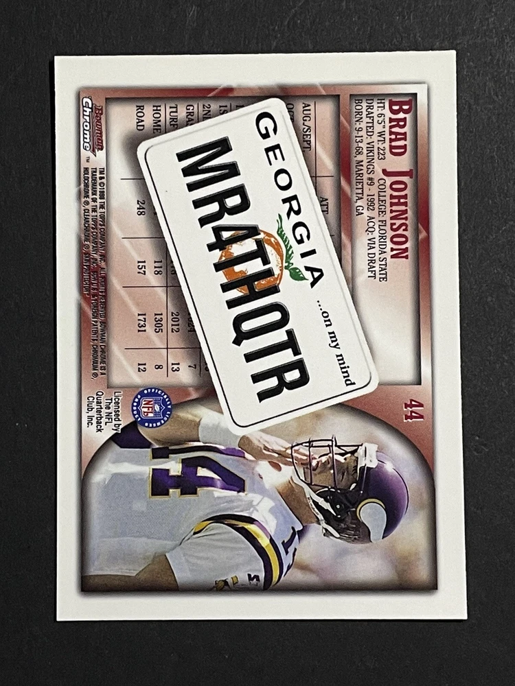 1998 Bowman Chrome Brad Johnson Interstate Insert Card - Minnesota Vikings