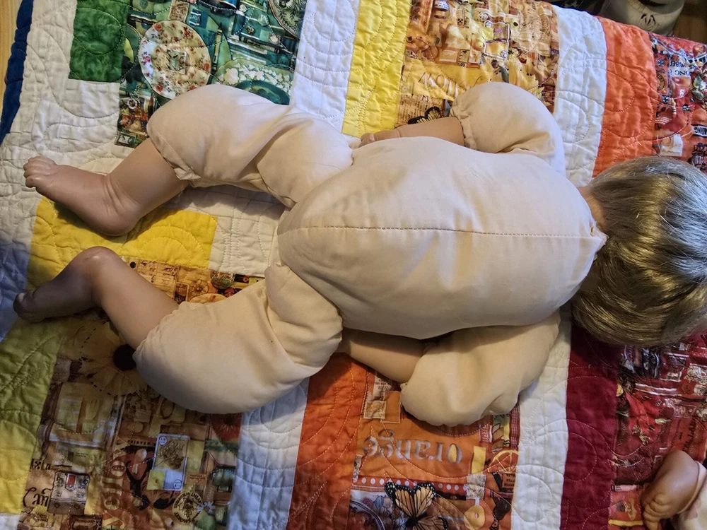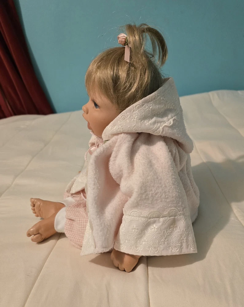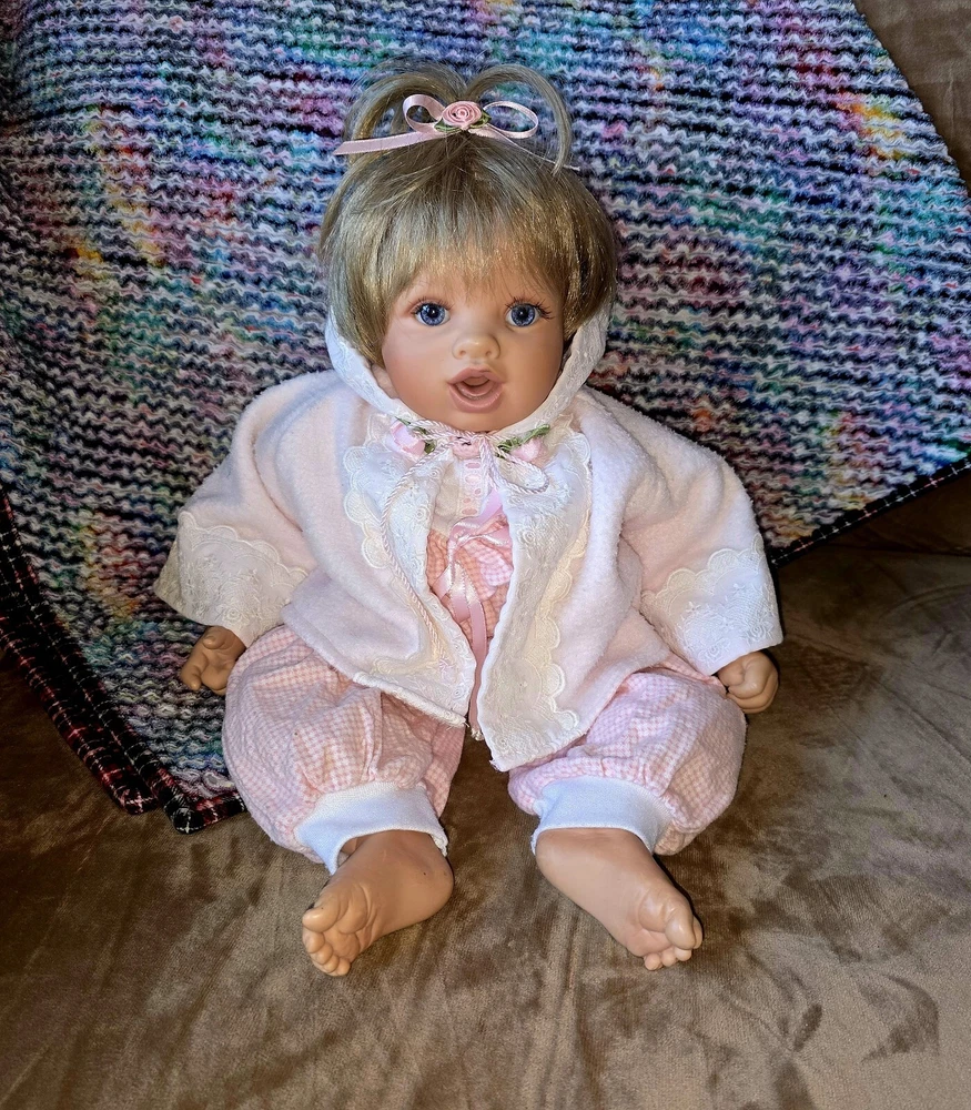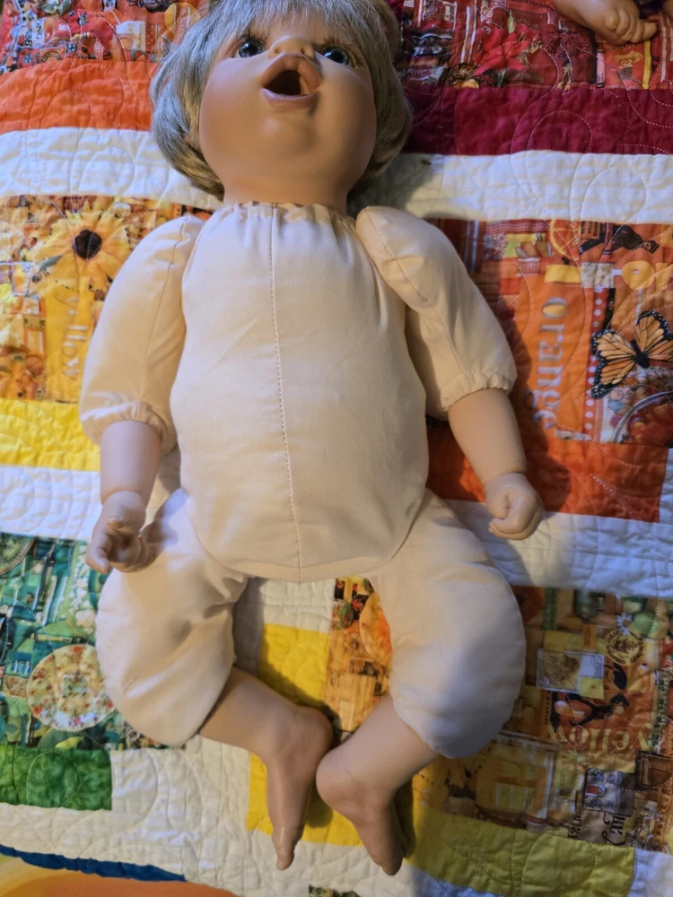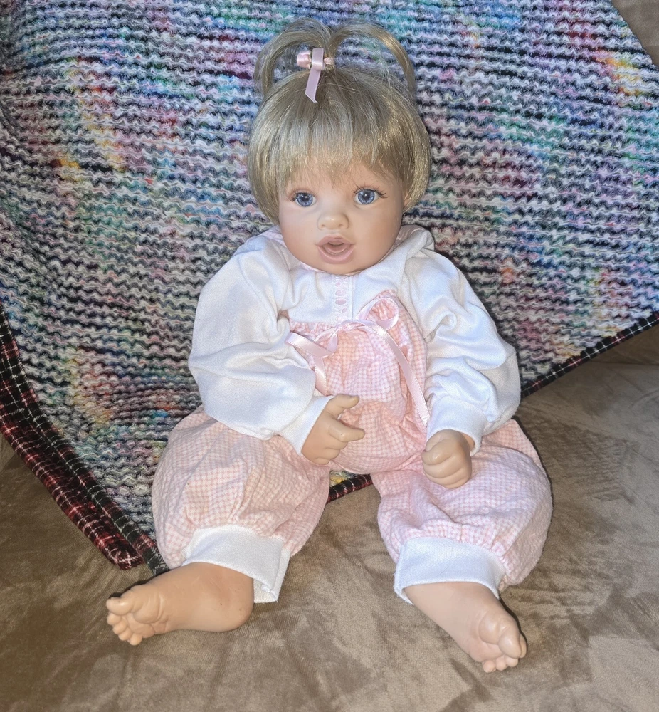 Unit of Sale: Single Unit Character: Bryan, V E Turner Baby Doll, Boy Doll Ethnicity: Caucasian Country/Region of Manufacture: United States Doll Hair Type: Straight, Wavy Theme: Babies Doll Size: 20 in Franchise: Virginia Turner Doll Brand: Virginia Turner Signed: Yes Packaging: Without Packaging Year Manufactured: 1999 Occasion: All Occasions Material: Cloth, Vinyl Product Line: Turner Baby Doll Vintage: Yes MPN: V E TURNER Handmade: Yes Doll Eye Color: Blue Type: Artist Doll Doll Age Group: Unisex Baby & Toddler Series: Vintage Turner Doll Time Period Manufactured: 1990-1999 Original/Licensed Reproduction: Original Doll Hair Color: Blonde Signed By: Virginia Turner Item Length: 20 in Doll Gender: Girl Doll Features: Realistic, Weighted, Hang Tag, Numbered Doll Complexion: Medium Light Set Includes: Doll, Outfit, Pacifier Artist: Virginia Turner