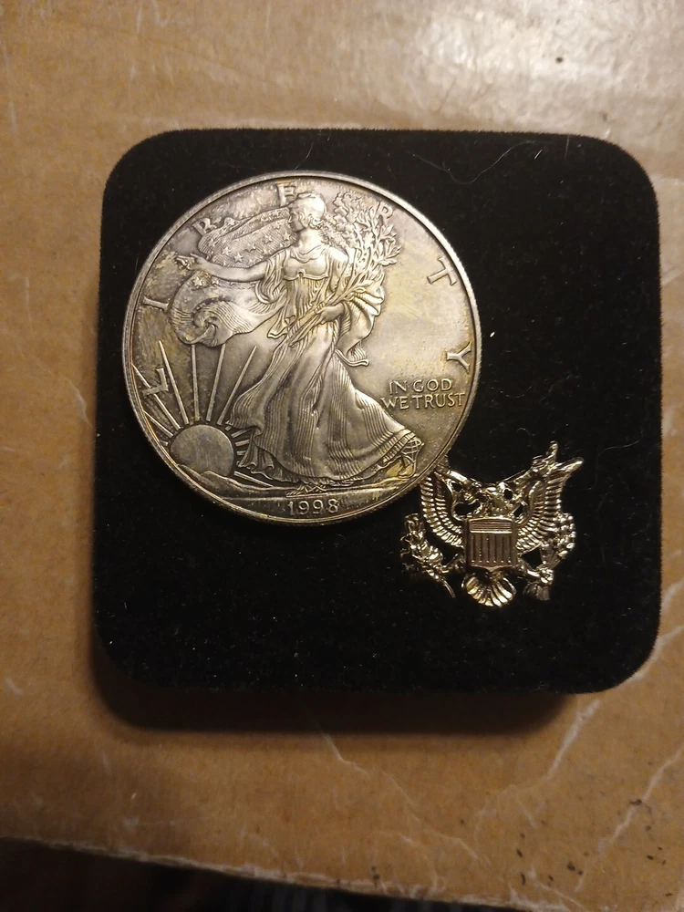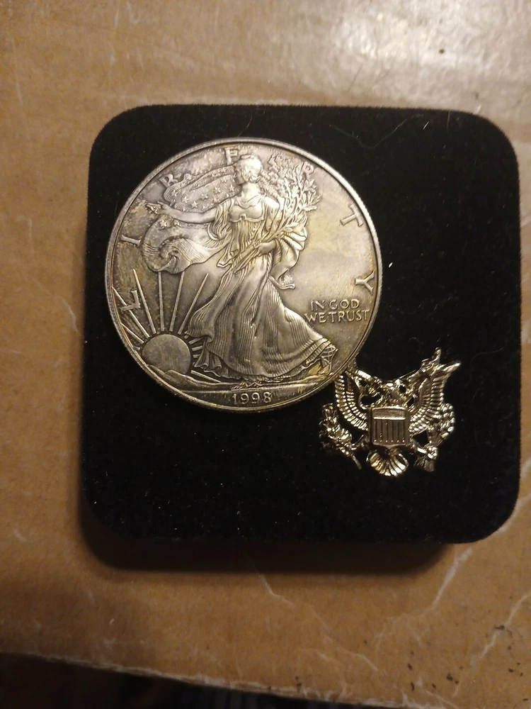 This beautiful 1998 Walking Liberty Ase Fine Silver 1 Oz Silver Eagle is a must-have for any coin collector. The coin features a stunning design and is made of high-quality silver, ensuring its value and longevity. The coin's composition and year add to its uniqueness, making it a rare find. The coin is perfect for those who appreciate the beauty and historical significance of silver coins. Its Precious Metal Content per Unit is 1 oz, making it a valuable addition to any collection. This coin is a great investment for anyone who loves coins and wants to add a beautiful piece to their collection.