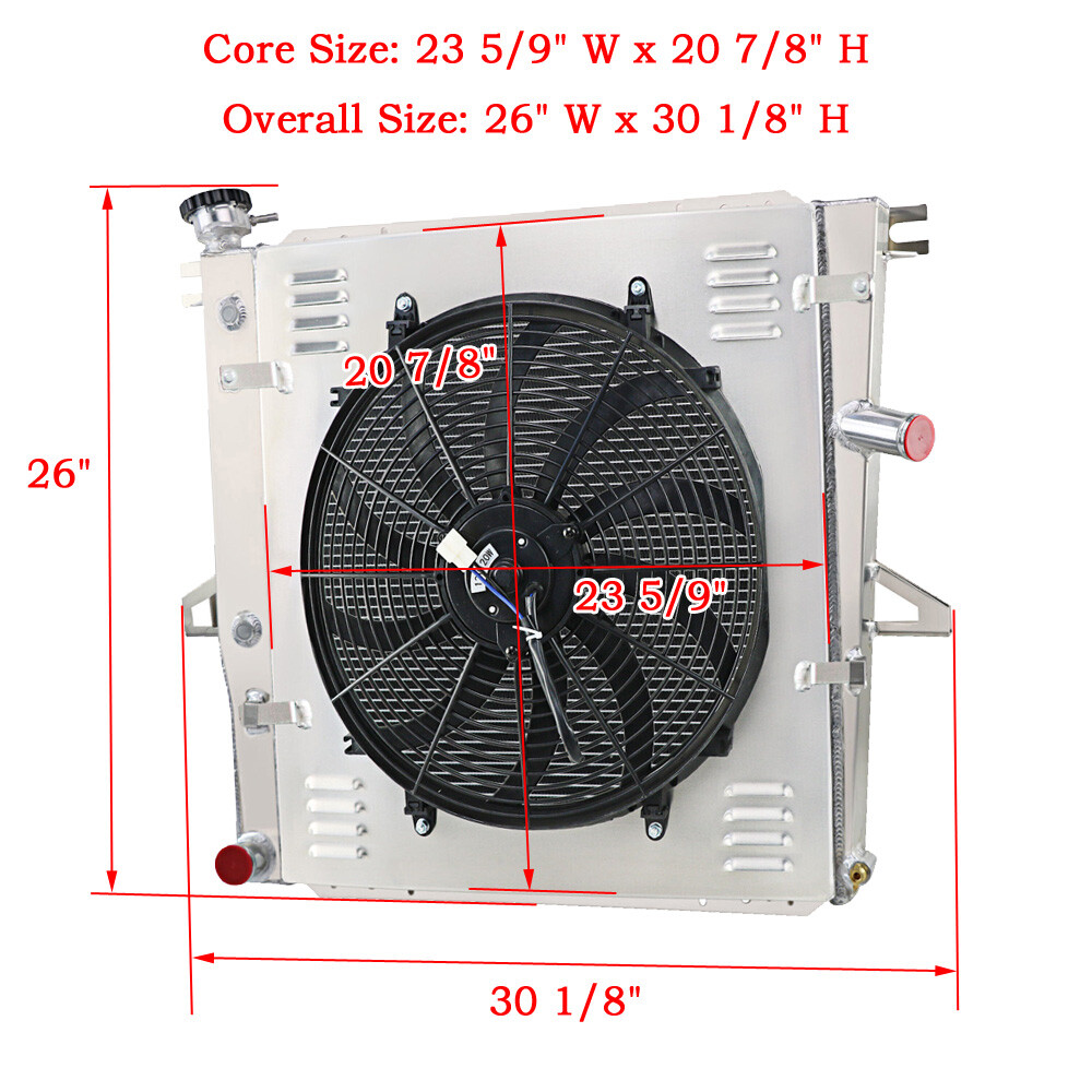 Document STORE HOME HOT ITEMS ADD TO FAVS CONTACT US FEEDBACK ABOUT US 3Row Radiator Shroud Fan For 1998-2011/01 Ford Explorer Ranger Mazda B3000 B4000 Package Include: 1 X 3-Row AA5052 Aluminum Radiator 1 X CNC Machined Radiator Cap 1 X AA5052 Aluminum Shroud 1 X 16" 120W Fans (Includes mounting kits) 1 X Thermostat Relay Kit Radiator Size: High Performance Racing Spec. 3 -Row of tubes Core Racing Design Petcock Drain:OEM style brass petcock drain Core Dimensions (HxW): 23 5/9" x 20 7/8" Overall Dimensions (HxW): 26" x 30 1/8" Hose Locations:In:Off-Set Passenger/Out:Driver Hose Fittings:In:1 1/2" -OUT:1 1/2" Trans Cooler: φ26*305*5/8-18UNF(Z) Mounting Type:Bracket Mount Radiator Flow: Cross Flow Please Check the Size Before You Buy! Vehicle Fitment For Ford Ranger 1985-1994 2.0L 2.3L L4 Engine. For Mazda B2300 1994 2.3L L4 Engine. For Ford Ranger & Mazda B2300 L4 1985-1994 Auto/Manual For Ford Explorer 4.0L 1998-2001 Auto/Manual For Ford Explorer Sport Trac 4.0L 2001-2005 Auto/Manual For Ford Ranger 3.0L 98-08 & Ranger 4.0L 1998-2011 Auto/Manual For Mazda B3000 3.0L 97-08 & B4000 4.0L 98-10 Auto/Manual For Mercury Mountaineer 4.0L 2001 Auto/Manual 16" Fan Voltage: DC 12 Volts Maximum Fan CFM: 2150 cfm Wattage: 120 Wattage Thickness (in): 2.95" Number of Blades: 10 S-Type blades Maximum Fan RPM: 2,250 rpm Amp Draw: 10 amps Thermostat Kit Installation: Universal fit for any automotive vehicle and electric fan. Activates by grounding electric fans at preset temperature. 180'F turn-on temperature, 165'F turn-off temperature. Probe typically threads into radiator, water outlet or manifold. RED + connect directly to battery. WHITE wire to ignition switch power source. BLACK goes to thermos switch. BLUE wire goes to the Fans. Our Radiator is made of AA5052 aircraft aluminum. Its different from other sellers T-3303 Series. In fact, AA5052 series Aluminum is much better than T-3303 series. More than 90% of aftermarket manufacturers use the T-3303 series Aluminum, because it is cheaper and easier to get the material. However, T-3303 aluminum has many disadvantages, such as poor polishing effect, softness, easiness to scratch and corrode, poor heat dissipation effect. If the T-3303 aluminum radiator is operated in high pressure and high temperature for a long time, the leaking problem would occur very soon. AA5052 Aluminum is an Al-Mg alloy with good corrosion resistance, excellent reliability and cold workability and strength. The main alloying element of AA5052 is magnesium, which has good forming and processing properties. It is widely used in the manufacture of aircraft fuel tanks, oil pipes, and sheet metal parts of transportation vehicles and ships, hardware products, and electrical-appliance casings. This AA5052 Aluminum Radiator is designed to provide maximum cooling efficiency to prevent premature engine failure. Its light-weight, and high-heat transferring aluminum features a tube and fin design that, dramatically increases surface area that enables the heat to dissipate more efficiently. This AA5052 Aluminum Radiator is at least 30%-45% more efficient than stock ones. Most importantly, it has a much higher capacity for coolant than stock ones, which means that your cooling system will be more efficient and will be more resistant to temperature surges in racing applications. 1. Made from Aircraft AA5052 grade aluminum for prolonged lifespanand with raw aluminum finish 2. Brazed core technology to guarantee optimum performance and dependability 3. All AA5052 Aluminum 2mm thick tanks and fittings,Ensure it's hard and durable 4. Billet Aluminum CNC machined fill neck rugged and durable 5. CNC machined cap with Engraved craftsmanship, anodized treatment. 6. OEM style brass petcock drain much better than other plastic one on eBay 7. Carefully crafted to exceptional OE standards for precise fit. PAYMENT SHIPPING RETURNS FEEDBACK ABOUT US PAYMENT We accept only PayPal payment All major credit cards are accepted through secure payment processor PayPal.(* If you use e-check on PayPal, delivery may take longer, as we will hold your order until your e-check clear) Payment must be received within 7 business days of auction closing. Please make sure your PayPal and eBay address is correct. If not, please correct it before payment. Thank you. Custom duties, taxes, or charges are not included in the cost you pay to us. Please check with your country's customs office to determine what these additional costs will be prior to bidding/ buying. SHIPPING We Ship to Worldwide, except China (Hong Kong), and we do not ship to APO/FPO. Orders processed within 12-24 hours of payment verification.( On Sundayis our rest day). Before buying, Please make sure your PayPal and eBay address is correct. If not, please correct it before payment.if you want me send the item to another address,please send me a message. If you have not received your shipment within 40 days from payment, please contact us. We will track the shipment and get back to you as soon as possible with a reply. Our goal is customer satisfaction! Due to stock status and time differences, we will choose to ship your item from our first available warehouse for fast delivery. Many of our products have overseas warehouses, including Australian warehouses, American warehouses and British warehouses. RETURNS If you are not satisfied when you receive your item, please return it within 60 days for a replacement or money back. Please contact me before you return it. Defective items Must Be reported and returned to us within the warranty period (and in the original packaging, if possible). You must tell us what the defect is and give us your eBay ID. We act as a responsible seller; we are willing to actively undertake the following responsibilities: a. The item is lost during transit; b. The item is damaged during transport; c. Due to our work errors, transporting the wrong items to the buyer; d. The item in the actual use of the process of quality problems. FE
