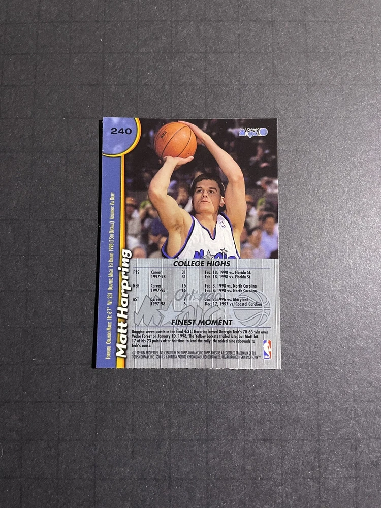1998-99 Topps Finest Matt Harpring Rookie Card #240 - Orlando Magic