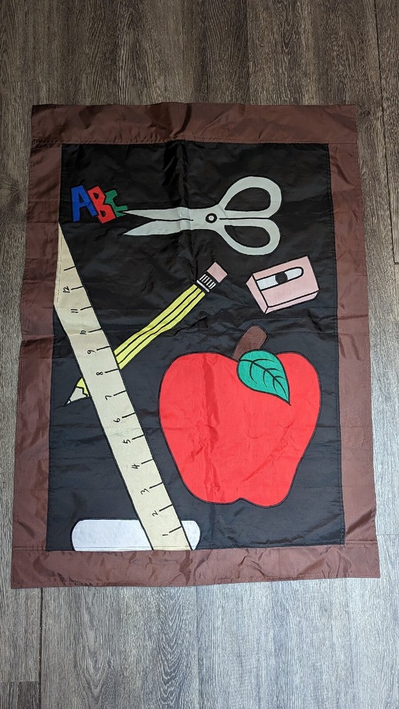 1999 Back To School Fall Garden Lawn Yard Flag Banner Pencil Apple Ruler 28X40, removed from packaging for photo taking purposes
