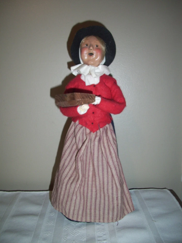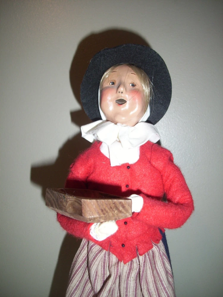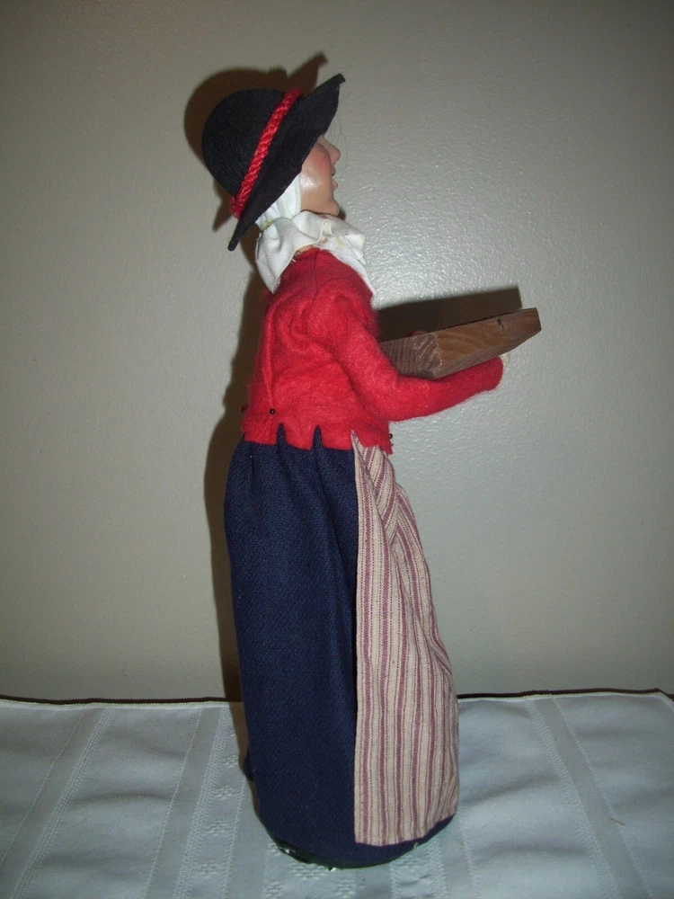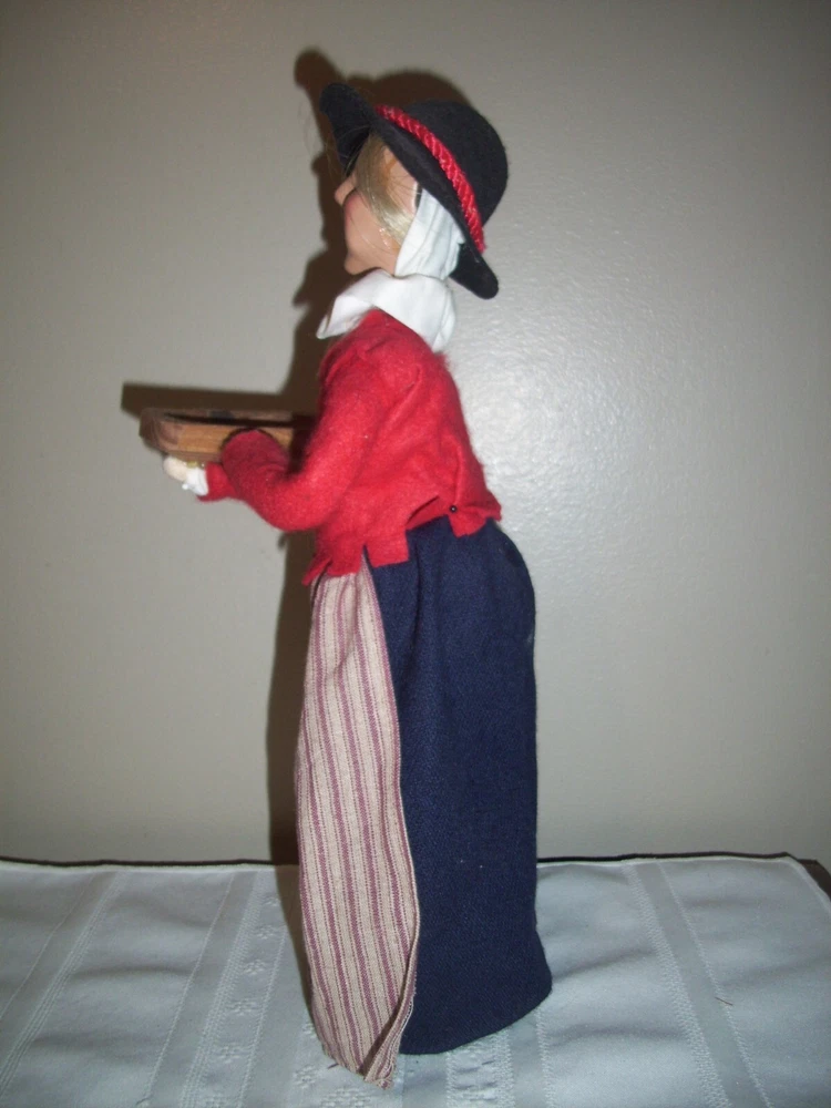 Elevate your holiday decor with the 1999 Byers Choice Plimouth Plantation Exclusive Woman Holding Wood Trencher Bowl figurine. A beautiful representation of colonial craftsmanship, this piece boasts intricate detail and a rich, multicolor palette, making it a standout addition to any Christmas collection. The figurine, standing at an impressive 13 1/2", is handcrafted from mixed materials, ensuring that each piece is unique. With a colonial style that complements any festive theme, this Byers' Choice creation from the Williamsburg collection captures the essence of Christmas occasions. Crafted in the United States during the early 2000s, this original, one-of-a-kind item features a multi-finish that adds depth to its all-over pattern, creating a visual masterpiece that is both timeless and hand-made. SEE MY OTHER BYERS CHOICE FIRGURES I HAVE LISTED.
