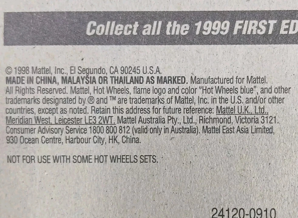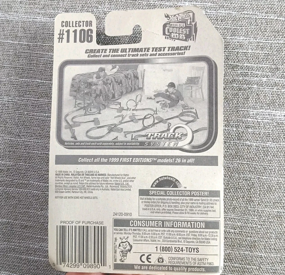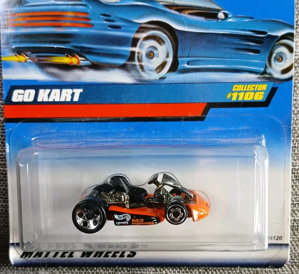 This 1999 Hot Wheels Collector No #1106 GO KART is a perfect addition to any die-cast car collection. The orange color and chrome 5-hole spoke wheels make it a standout piece. The vehicle is made of a combination of die-cast metal and plastic, ensuring durability and authenticity. The unopened box and 1:64 scale make it a great gift for collectors of all ages. The recommended age range is 3+, but children and adults alike will appreciate this classic Hot Wheels model. The car was manufactured in Malaysia and is part of the Mattel Wheels theme. Don't miss out on this opportunity to add a piece of Hot Wheels history to your collection. Condition: Brand new. Perfect condition, Please review all photos for additional details.
