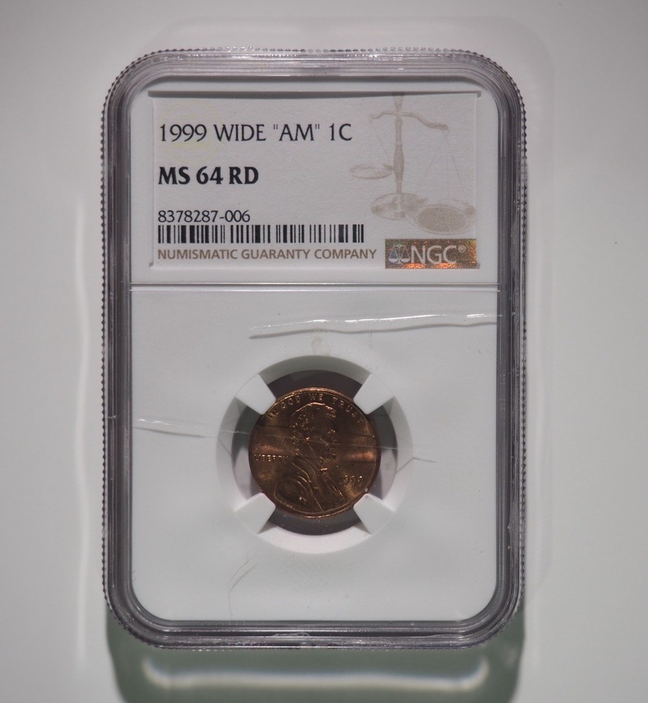 This 1999 Lincoln Memorial Penny is a must-have for serious coin collectors. Featuring a Wide AM variety, this coin is a rare find with a lot to offer. The NGC MS64 Red certification ensures its quality and authenticity, making it a valuable addition to any collection. The coin is made of copper with a striking business strike type and features an error that adds to its uniqueness. Uncirculated and ungraded, this Small Cent coin was minted at the Philadelphia Mint Location in the United States. Don't miss out on the chance to own this rare and valuable piece of history. Bar.541.987 2 scratches on the slab, obverse. See pictures.